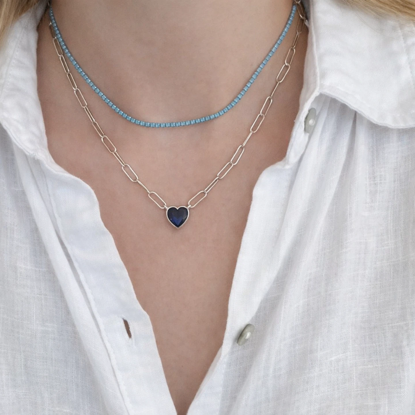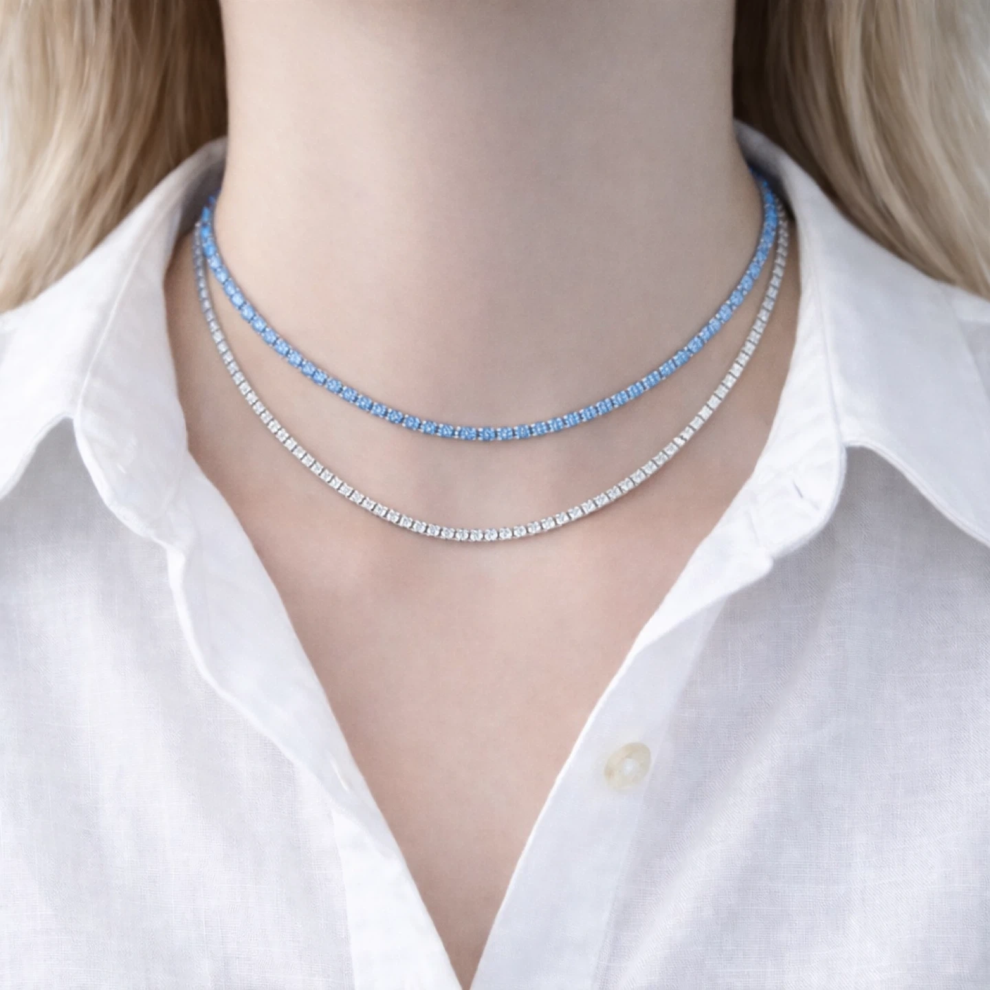 Trendy Turquoise Blue Tennis Necklaces 2 mm