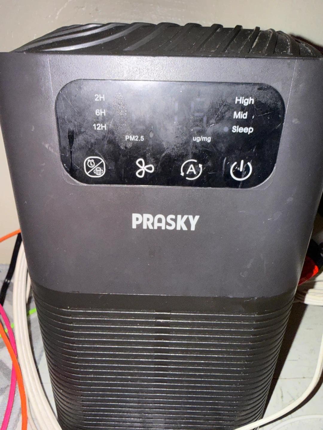 This PRASKY air purifier has multiple timer settings and fan speeds including sleep mode. It displays PM2.5 levels. It's a great device for maintaining cleaner air in your home!