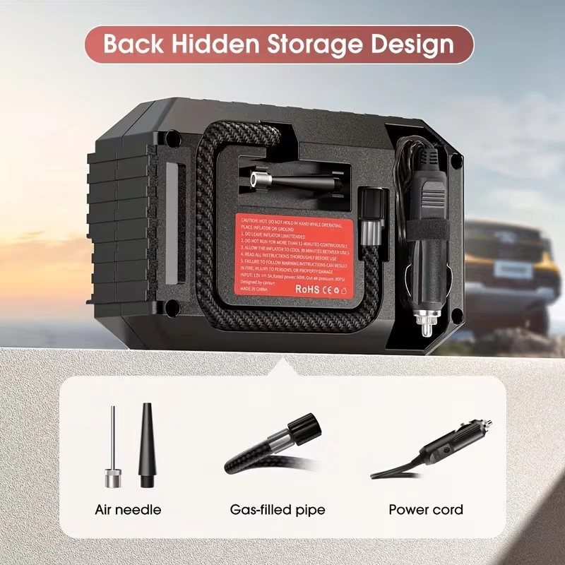 [Carsun Tire Inflator] Carsun 150PSI Tire Inflator for Cars - Portable Air Compressor for Vehicles, Motorcycles, And Bicycles with DC 12 Volt And LED Light, Without Battery