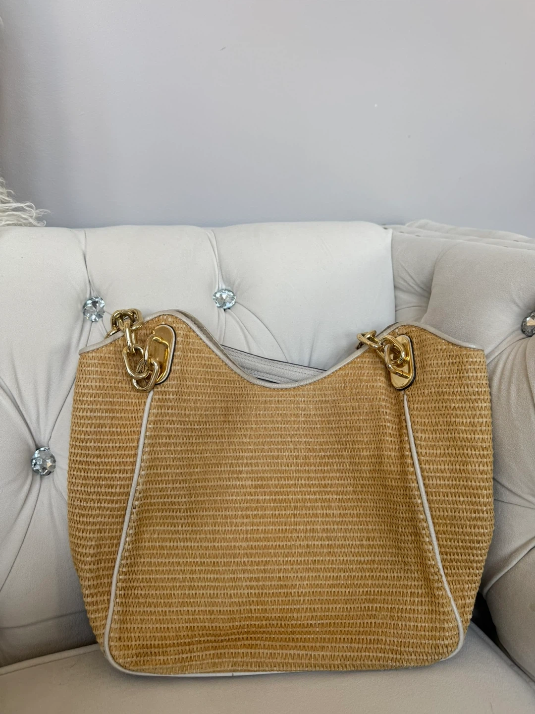 Michael Kors Straw Tote Bag with Gold Hardware