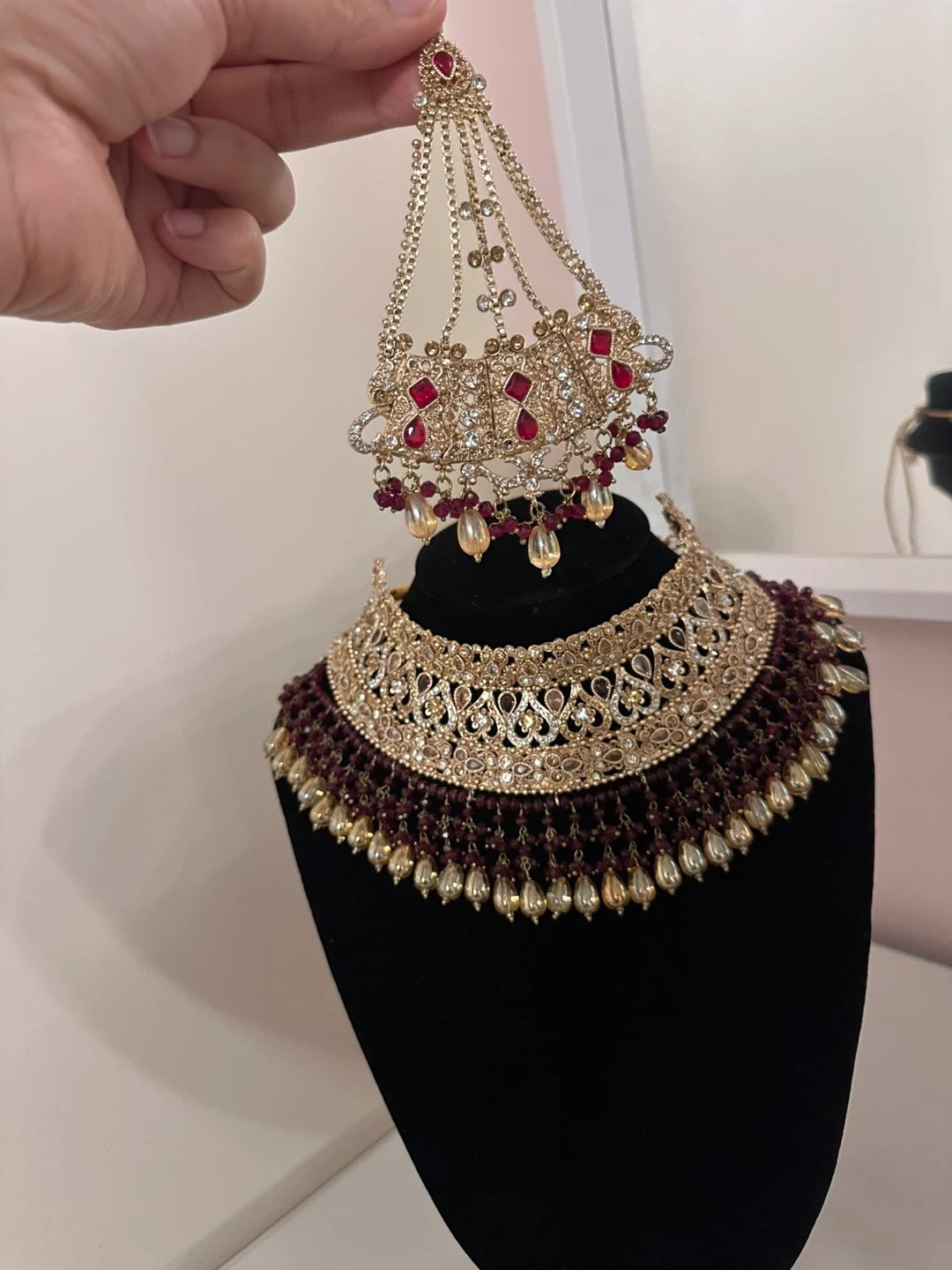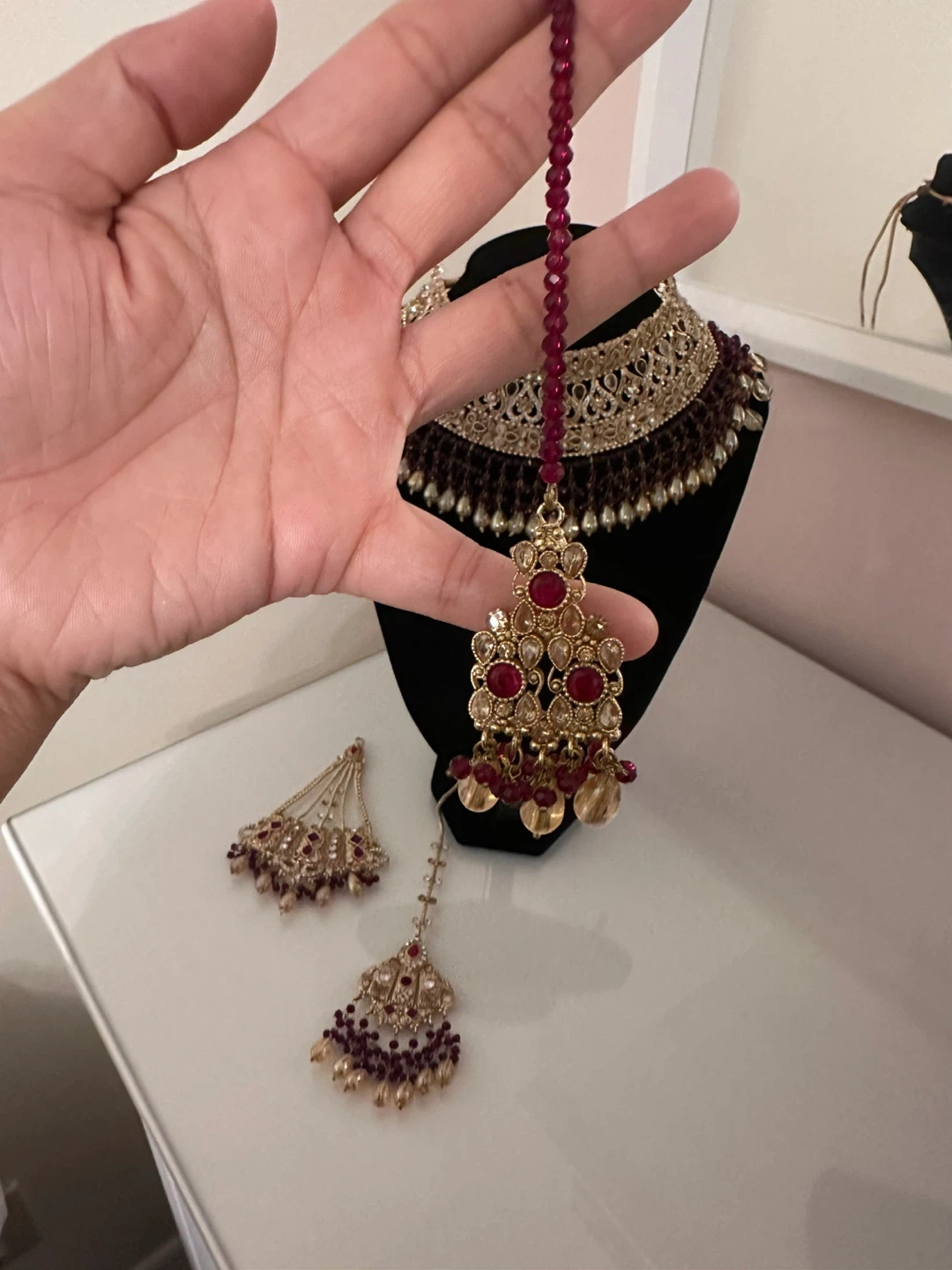 Beautiful Indian/Pakistani jewellery set in excellent condition. Includes a necklace, Jhumar, 2 headpiece (Maang Teeka), 2 Set of earrings, and Nose Ring (Nath) as pictured. Perfect for weddings, Brides or special occasions!