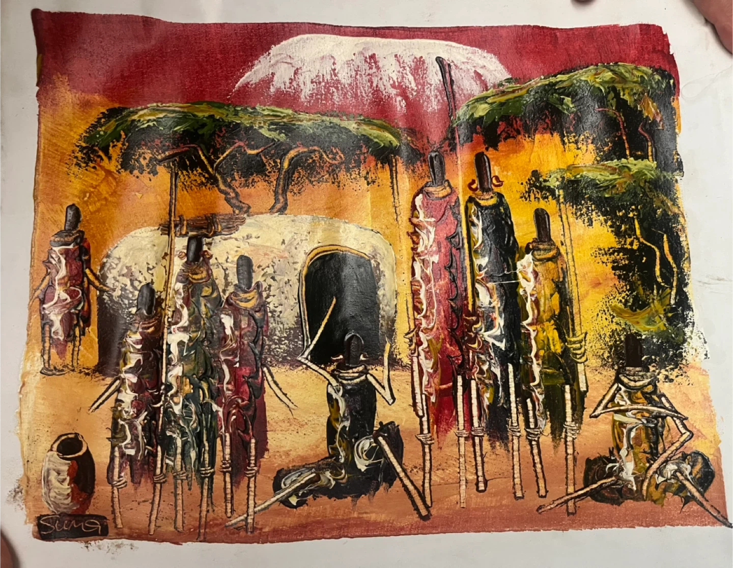 Beautiful paintings of the Maasai warriors. I have them stored away and think they would be better with someone who can hang them.