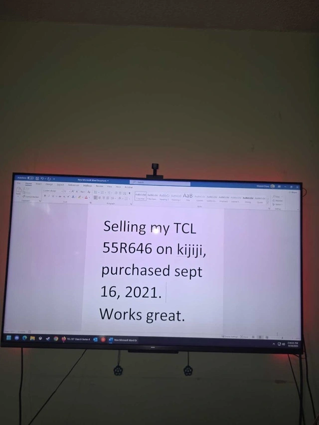 Selling my TCL 55r646 TV with 120Hz refresh rate and 55-inch screen. Includes Govee backlight. Pick up available near Steeles and Markham Road. Wall mount is not included. Price is firm.