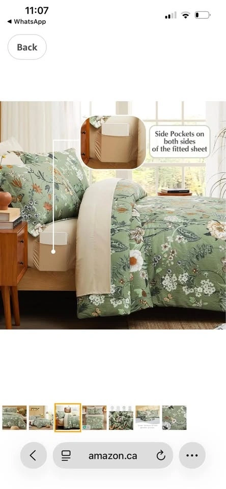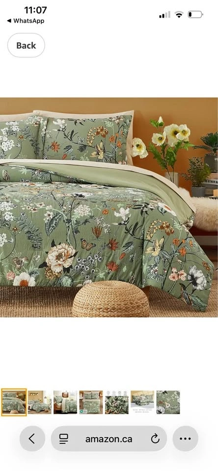 CASAAGUSTO Queen Comforter Set, 7 PCS. Green Butterfly Floral Comforter Set with Flowers Leaves Pattern. Soft Seersucker Design. All Season Queen Size Bedding Set (90"x90").