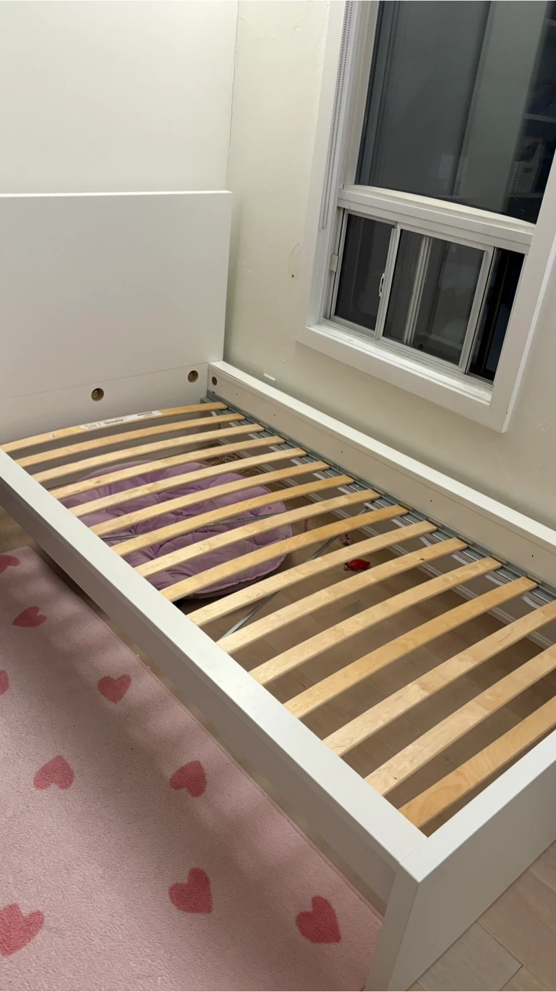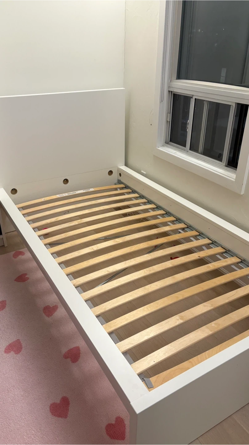 Buy & SellIKEA Single Bed Frame - WhiteIKEA Single Bed Frame - White$90Selling a single bed frame from IKEA! It's in good condition and ready for a new mattress. The frame is white and comes with the slatted base.ConditionGoodWHERE TO MEETPape and Dingwall St.View MapSELLERverifiedRoksanaLeslieville994 reviews2 chats·1 favorites·26 viewsSEND CHAT TO SELLERHi Roksana! I’m interested in your listing.Hi Roksana! I’m interested in your listing.Get the Karrot app to chatSign In to chat