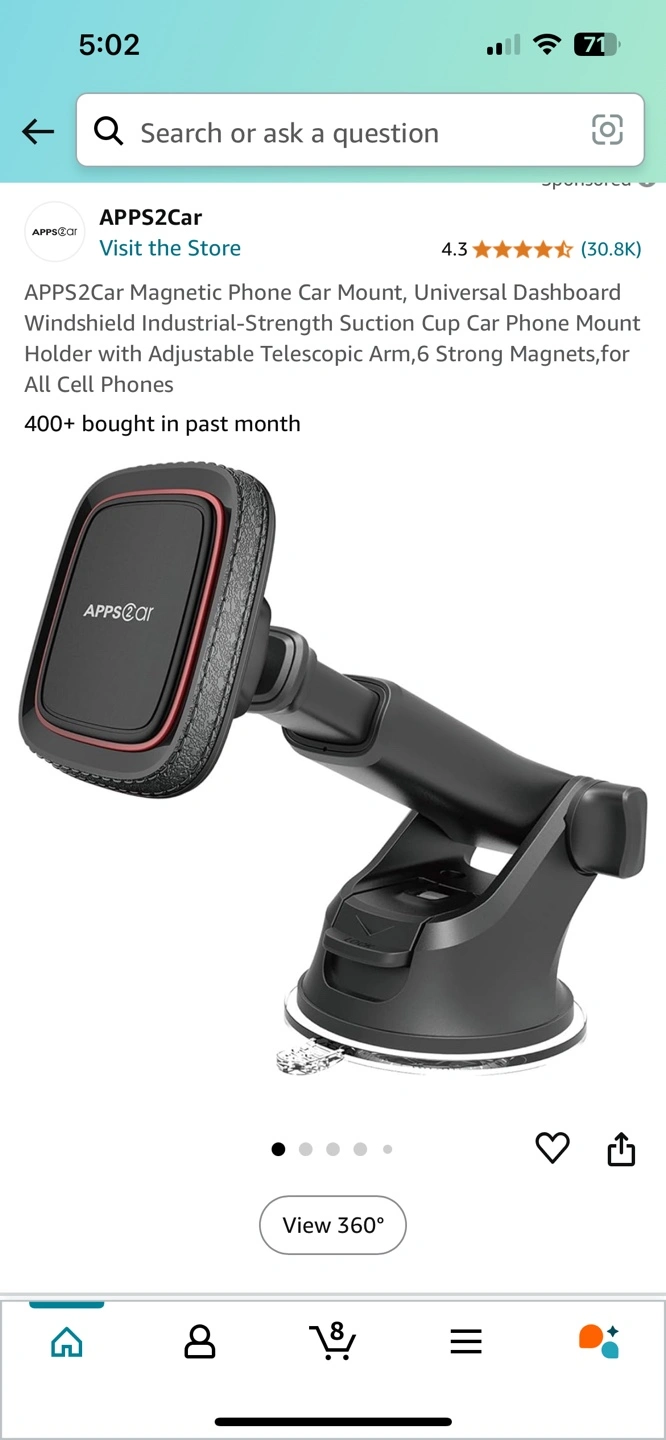 Magnetic phone car mount with suction cup. Adjustable telescopic arm. 6 strong magnets. For all cell phones.