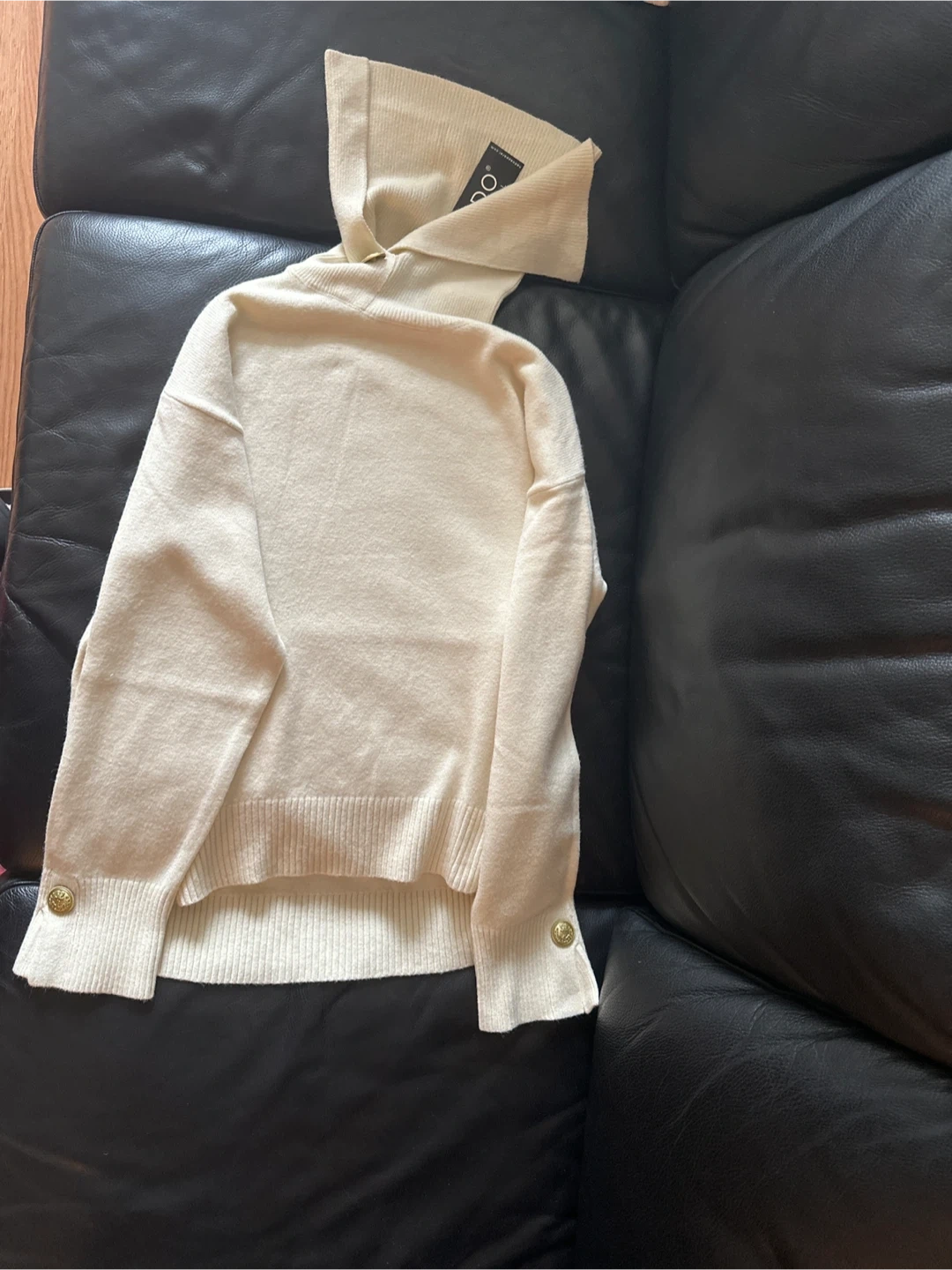 Selling a NADO cream-coloured turtleneck sweater! It's in great condition and has a unique and stylish look. The gold buttons on the sleeves add a nice touch