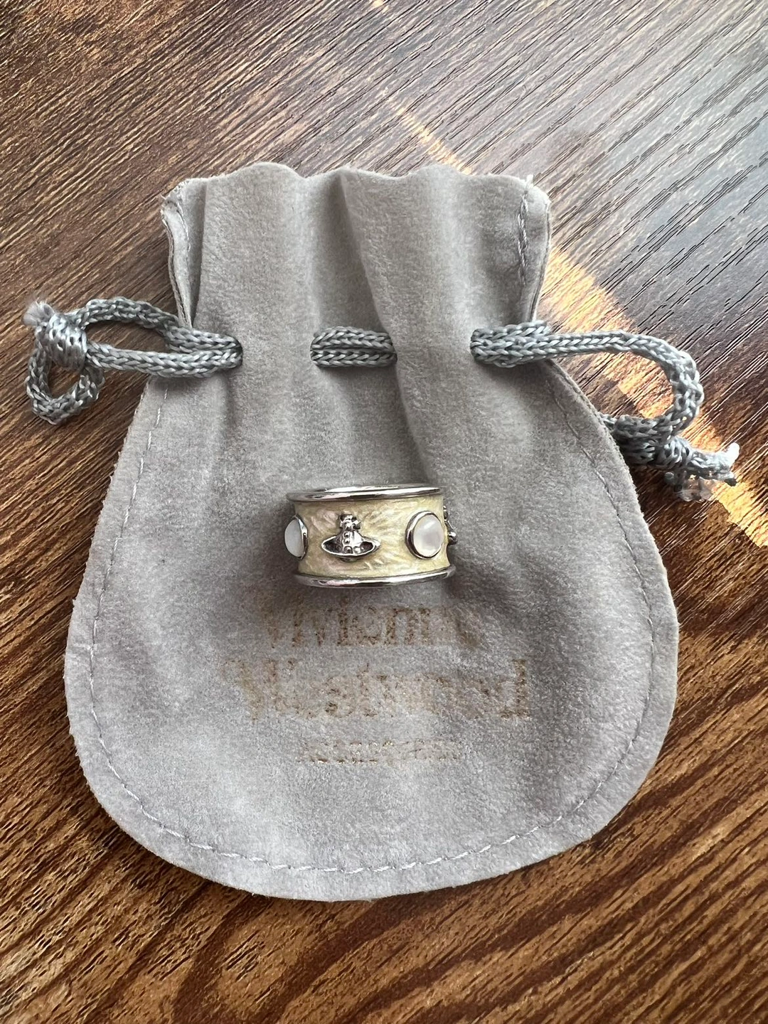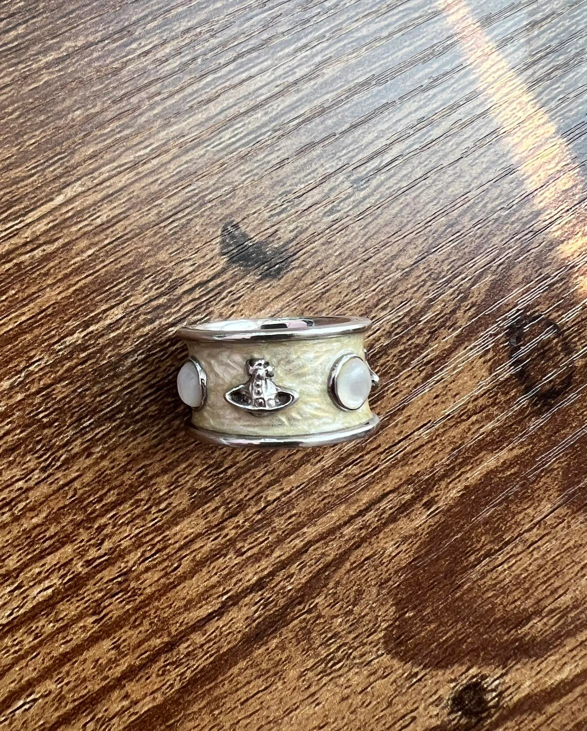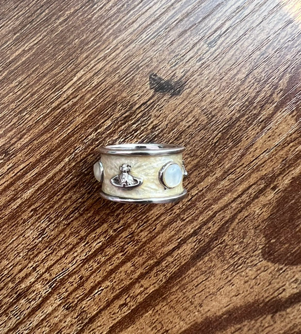 Vivienne Westwood Enamel & Mother of pearl Orb silver Ring