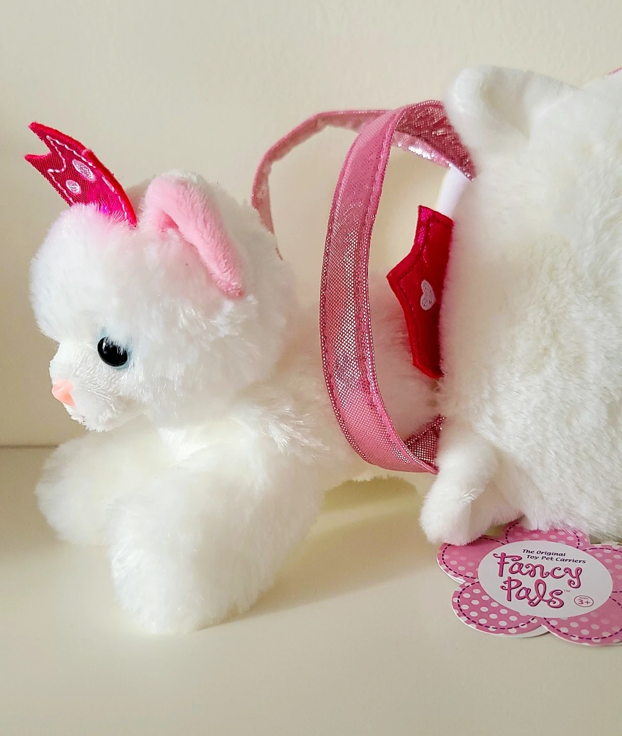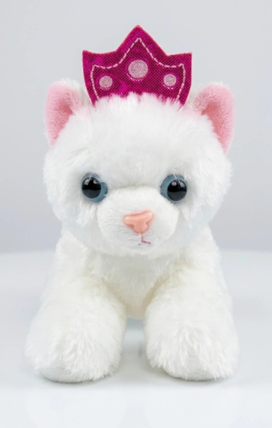 This super-cute 2-piece set features a white plush princess kitten with a glittery pink crown inside a matching, adorable kitty-faced carrier. This is a 100% authentic, brand new, factory-sealed item. Perfect as a hygienic gift for birthdays or surprises!