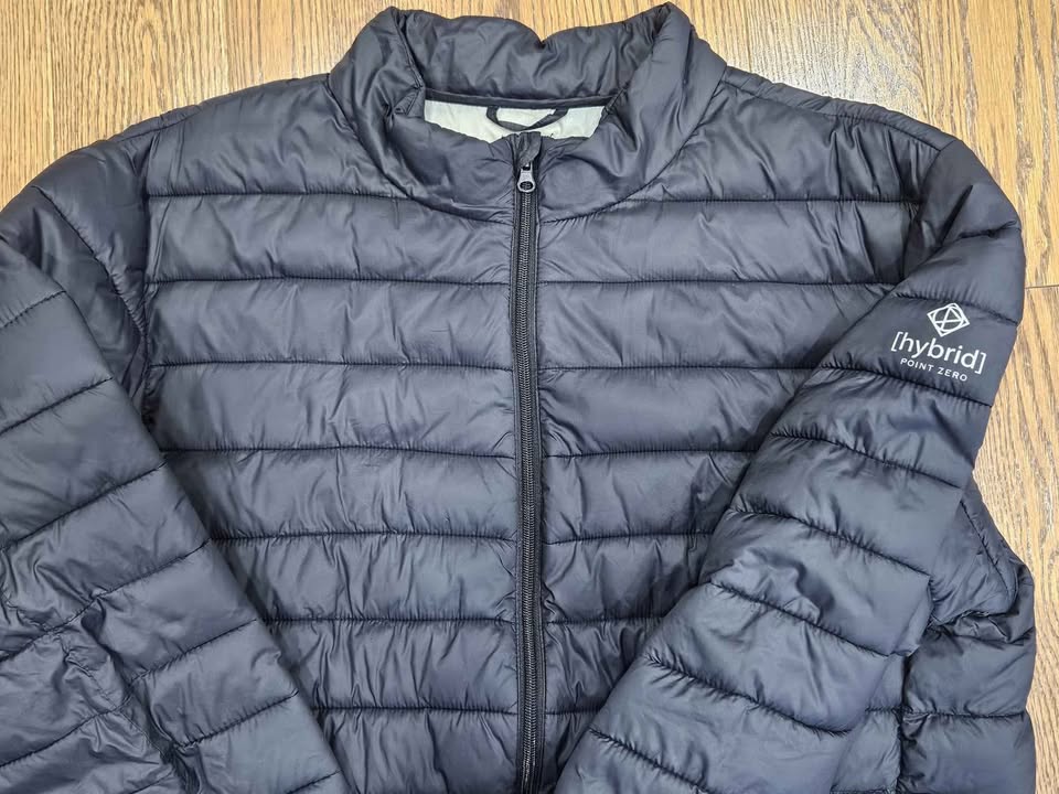 Stay warm and stylish with this Hybrid Point Zero puffer jacket, perfect for those cool days. This jacket is in good condition, showing only minor signs of wear, ensuring you get both quality and value.
