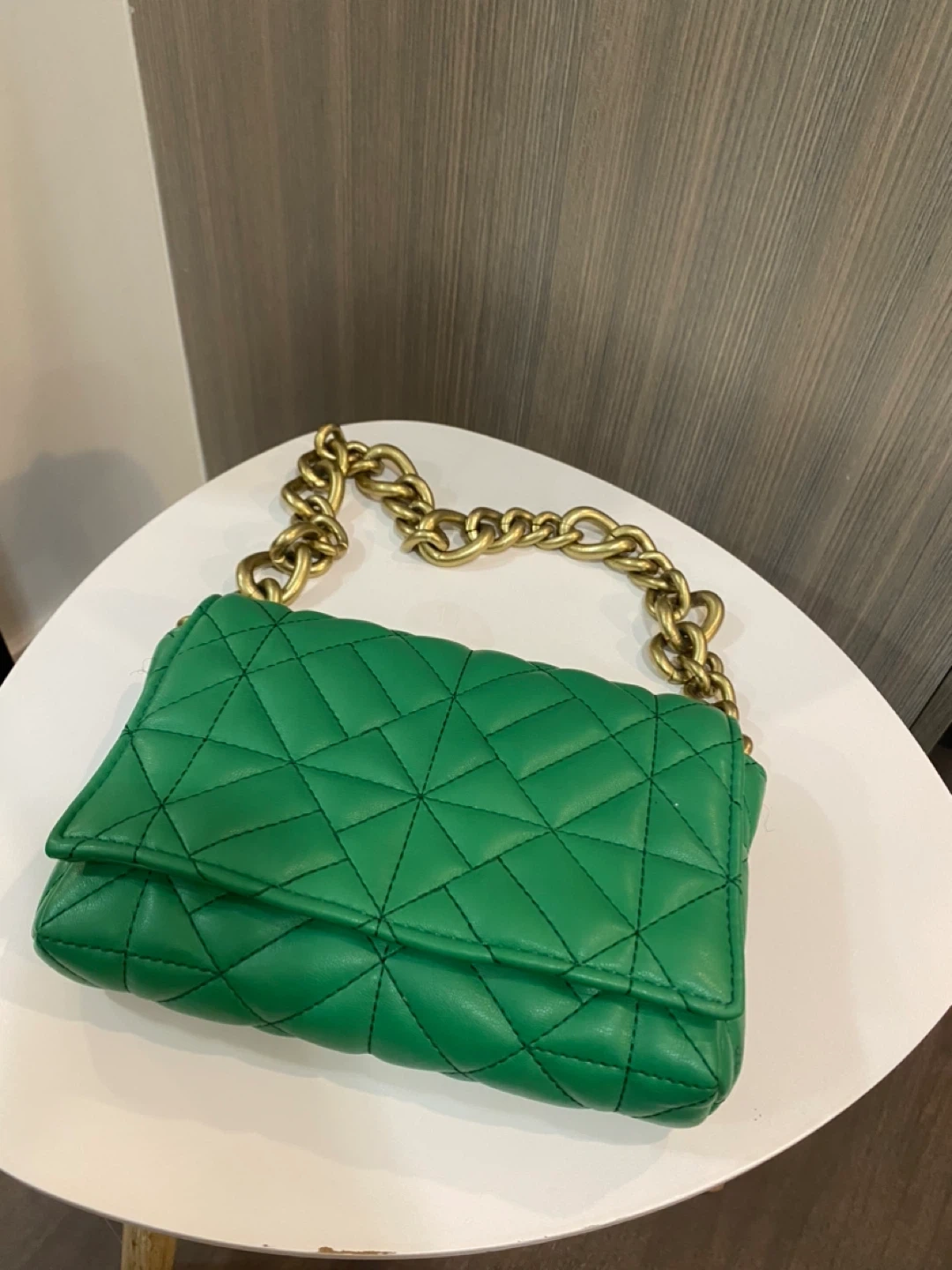 Green Quilted Handbag with Gold Chain