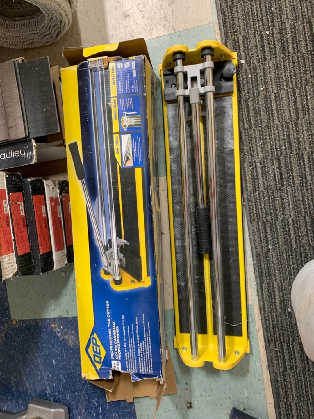 This is a professional tile cutter. It cuts wall and floor tile up to 20 in. diagonally, 1/2 in. thick. Cuts ceramic and porcelain tile. Adjustable rip guide designed to help make repetitive cuts faster and easier.