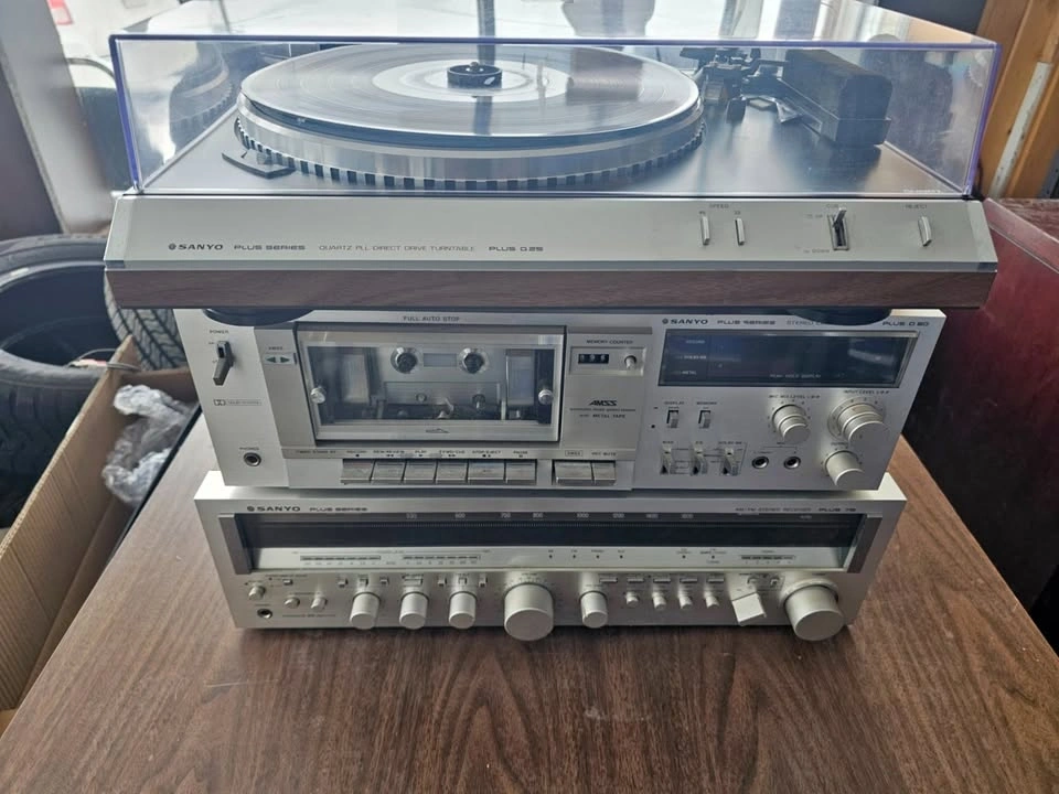 Complete vintage Sanyo Plus Series hi-fi system including: