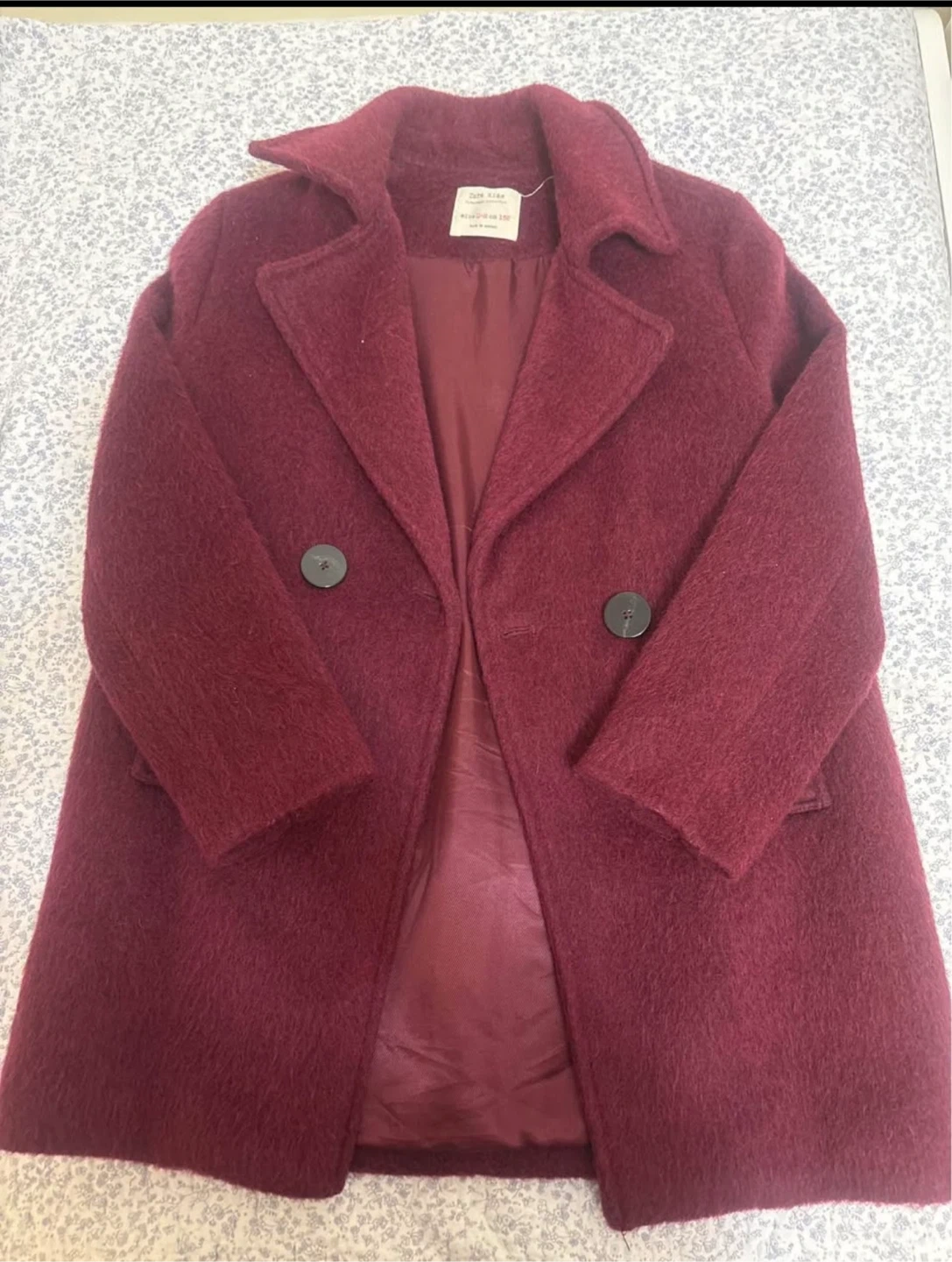 Zara Kids outerwear coat in a lovely burgundy shade. It's a size 11-12 years or 152cm. Made in Morocco. This coat is perfect for cooler weather!