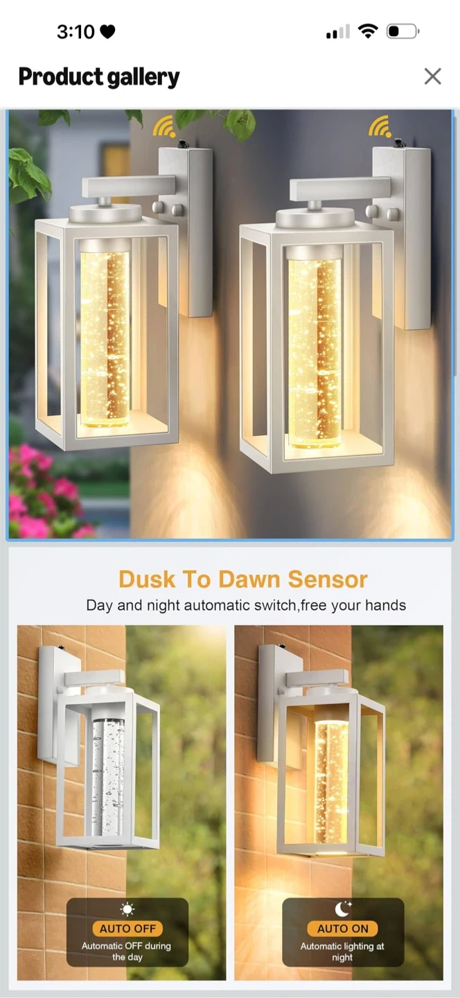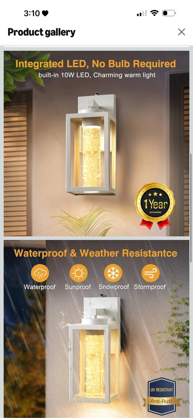 These VIANIS LED outdoor wall sconces come in a 2-pack. They feature a dusk to dawn photocell sensor for automatic operation. Includes bubble glass inserts for a stylish look.