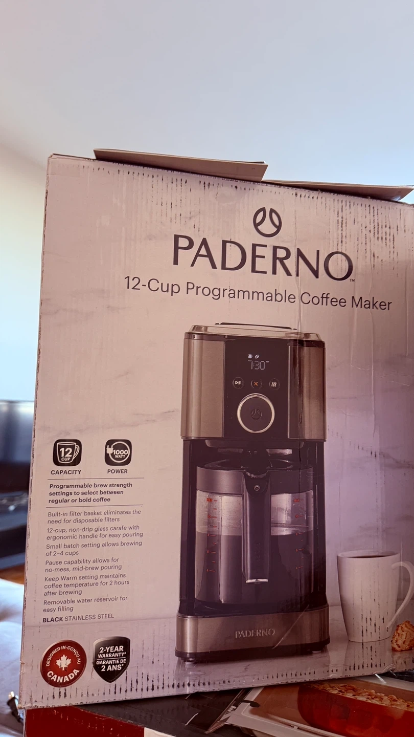 I'm selling a brand new Paderno 12-Cup Programmable Coffee Maker! It's still in its original box., brand new, unused!