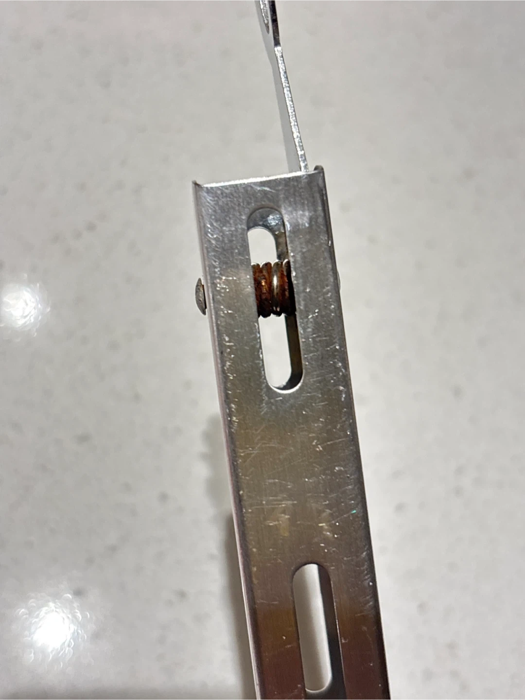 Some rust on the spring but otherwise in good condition. Heat resistant silicone coated. Good size to protect you from the heat source and still maintain a good grip on food.