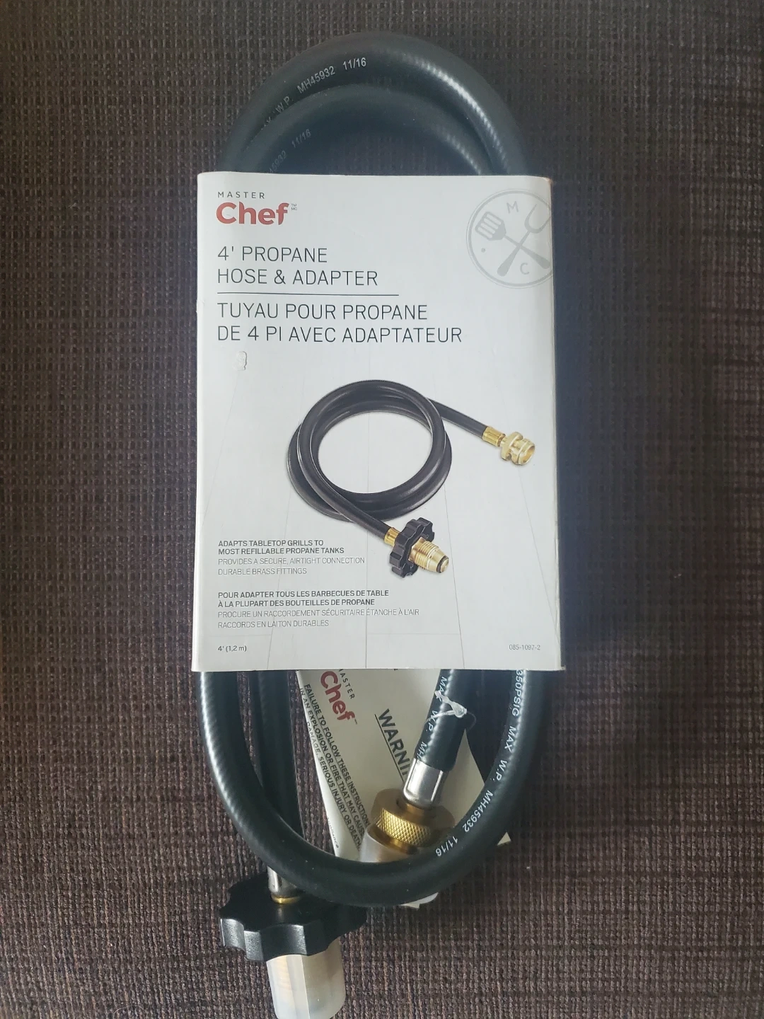 I'm selling a new 4' Master Chef Propane Hose & Adapter! It adapts tabletop grills to most refillable propane tanks, providing a secure, airtight connection with durable brass fittings