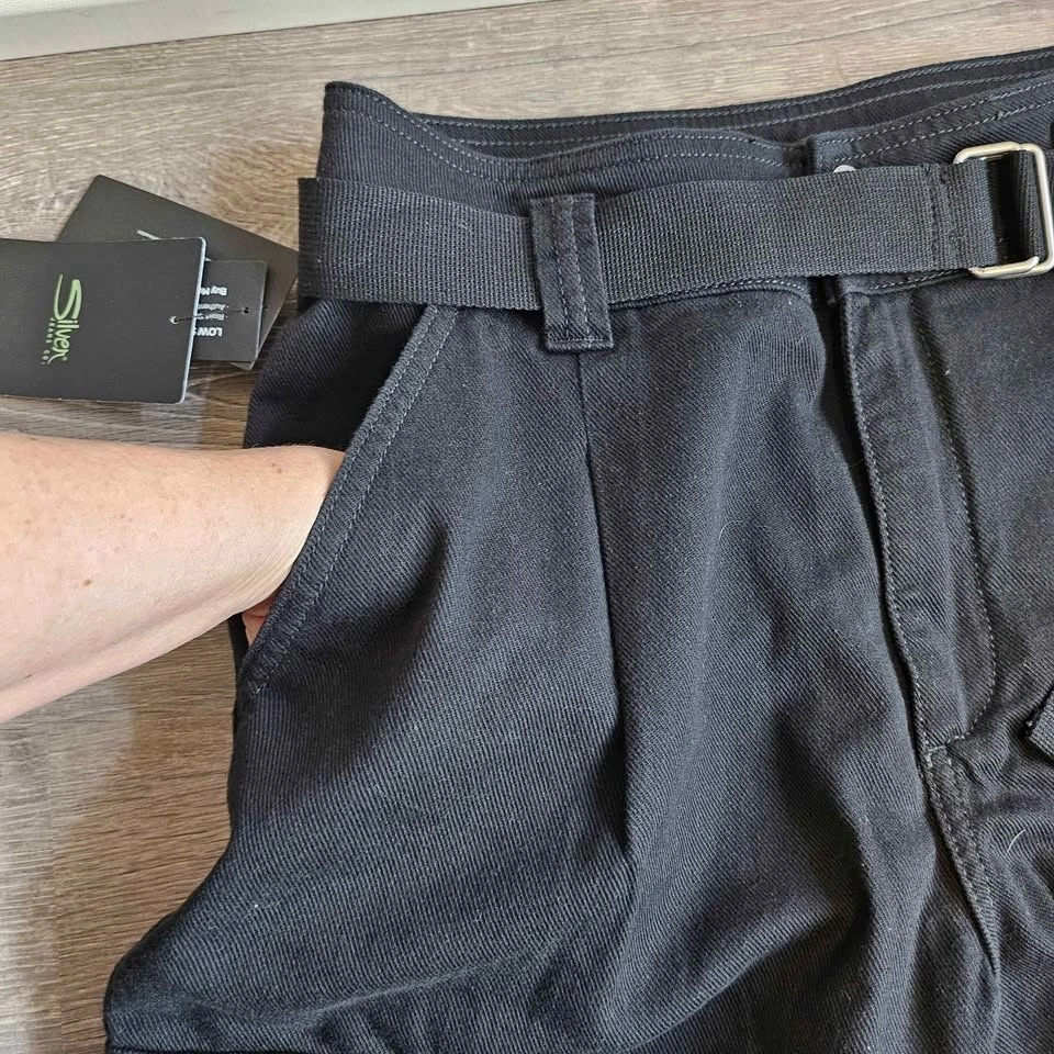 Selling a pair of comfy, black Silver Jeans Co. High Rise Relaxed Cargo Pants in size 27. These are new with tags (NWT) and have never been worn.