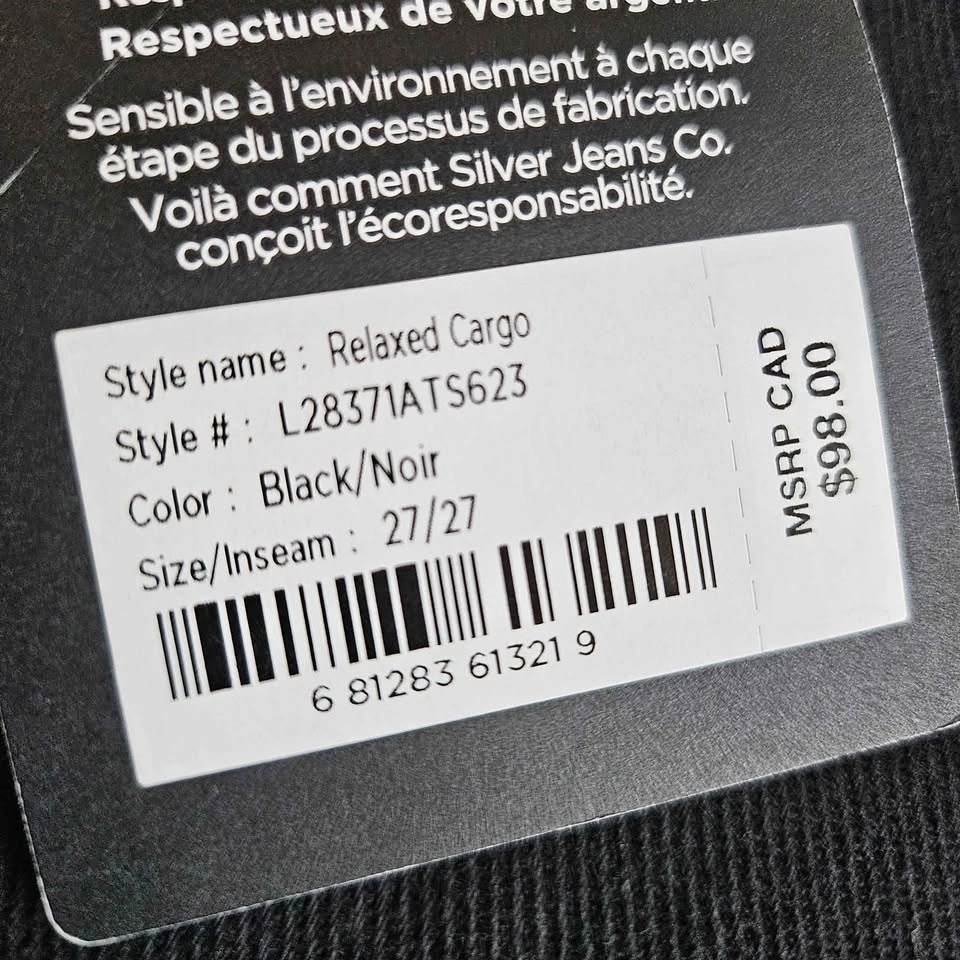 Silver Jeans Co. Relaxed Cargo Pants Black Size 27/27