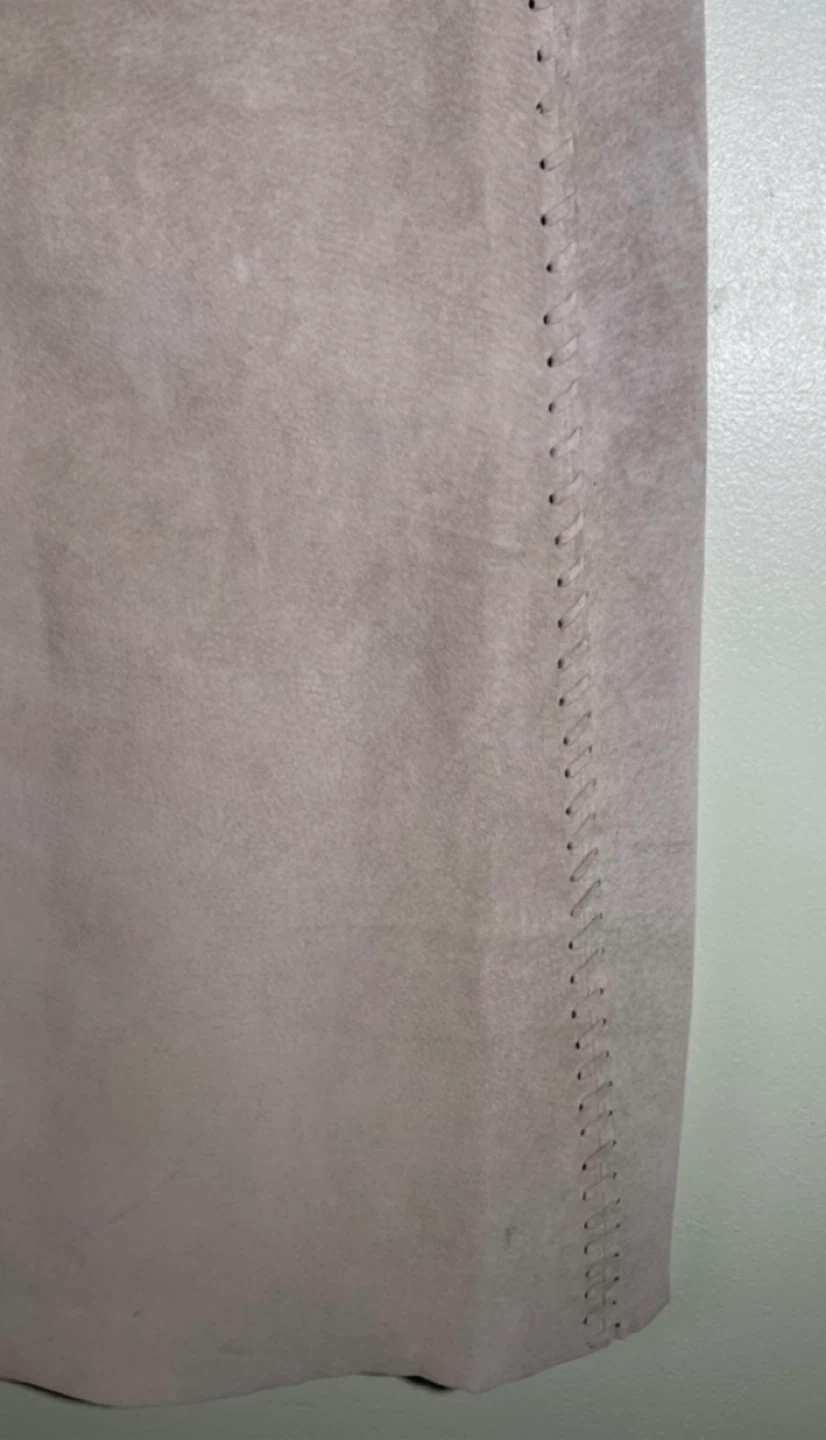 This skirt has a wrap-style front detail with tie accent, giving it a unique bohemian feel while still maintaining a clean, elegant silhouette. The faux suede texture is soft and structured, making it perfect for fall, winter, and transitional seasons.