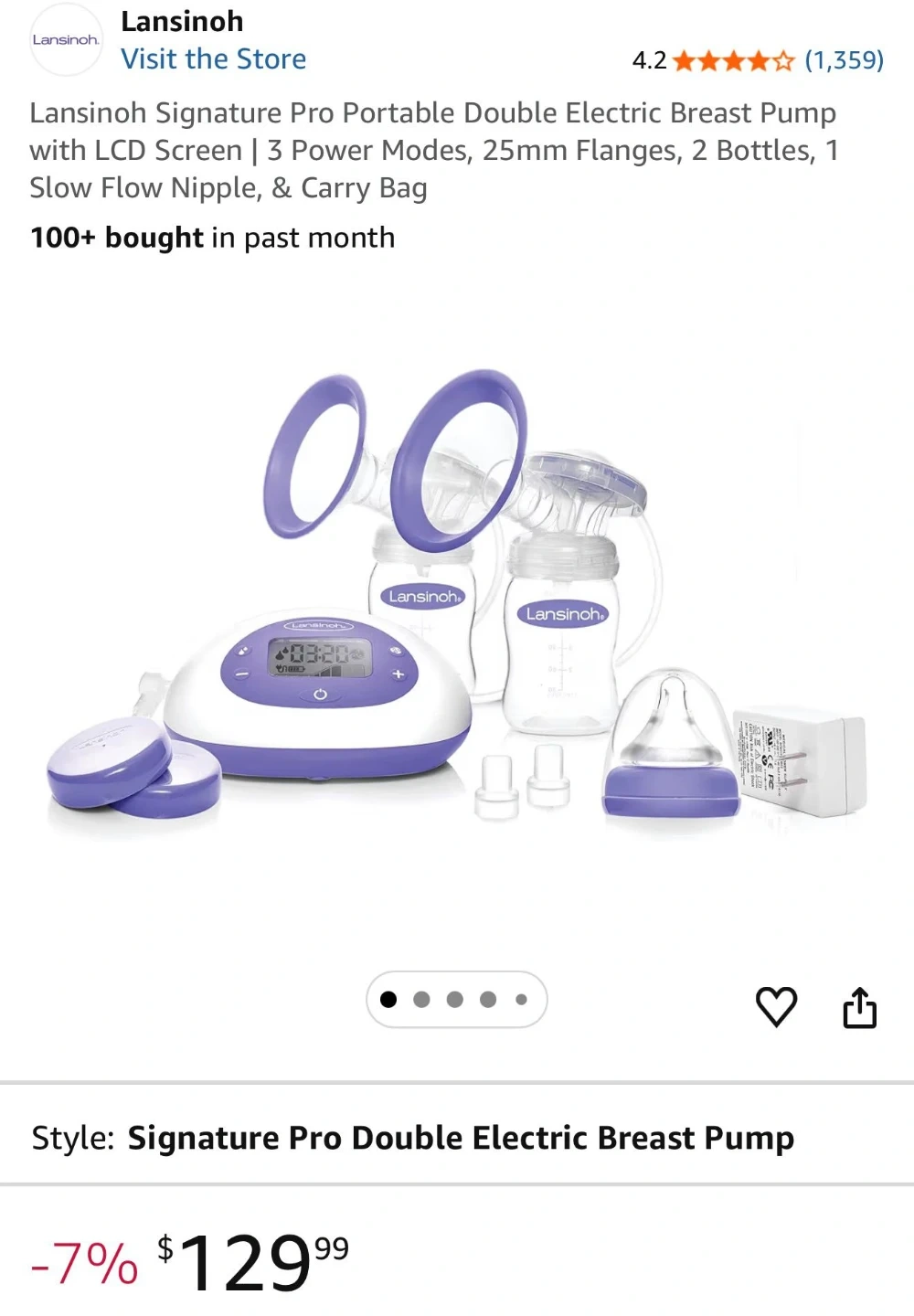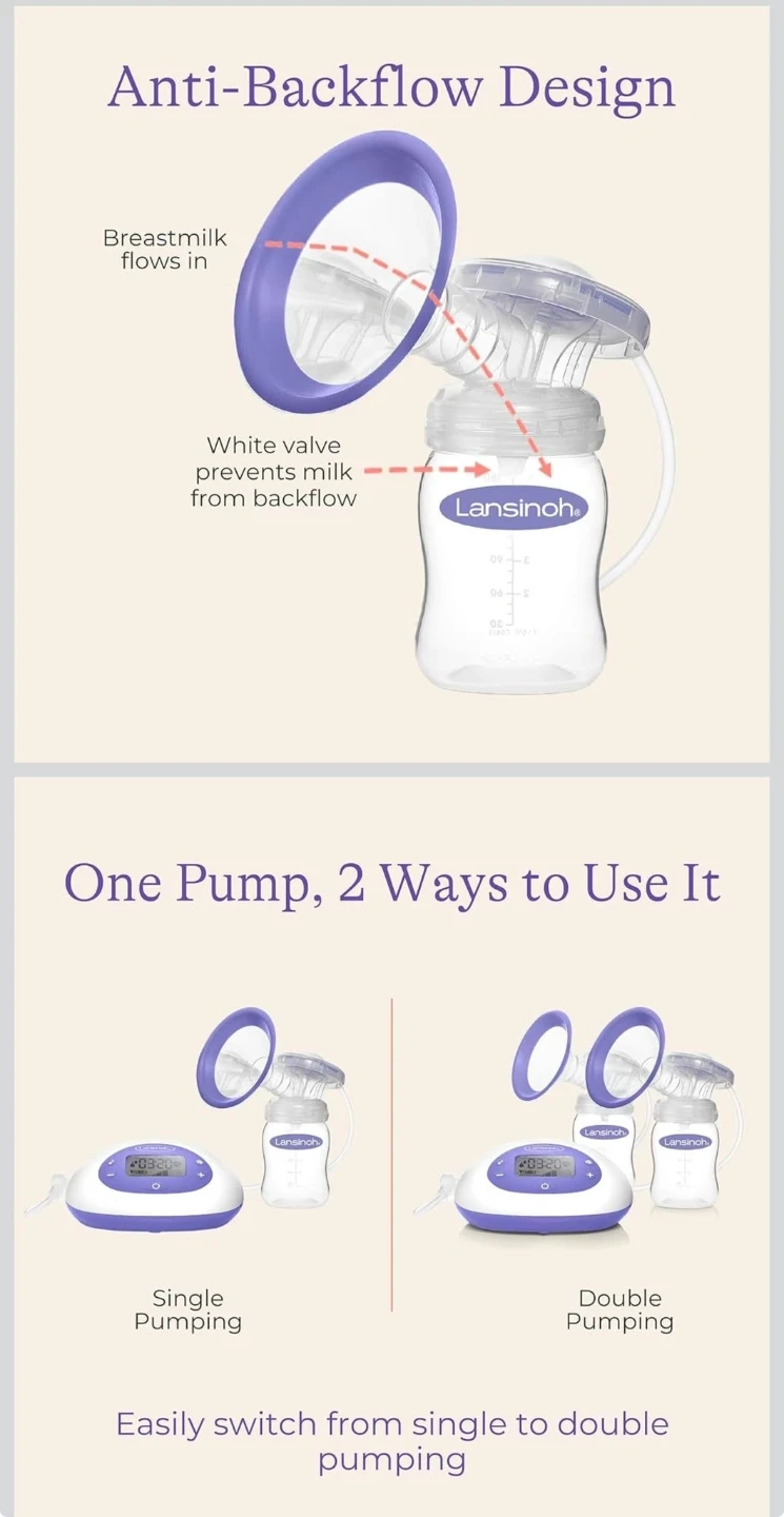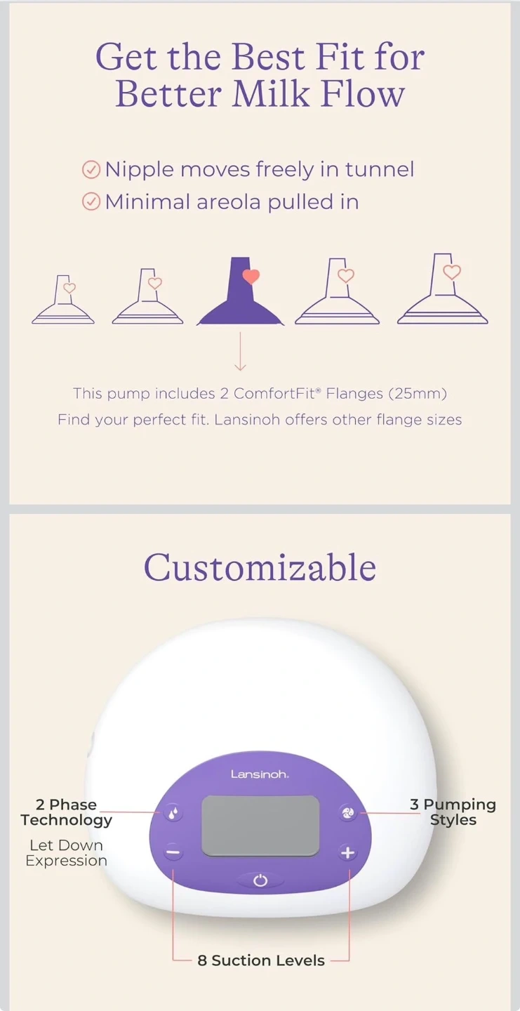 Lansinoh Signature Pro Portable Double Electric Breast Pump with LCD Screen | 3 Power Modes, 25mm Flanges, 2 Bottles, 1 Slow Flow Nipple, & Carry Bag
