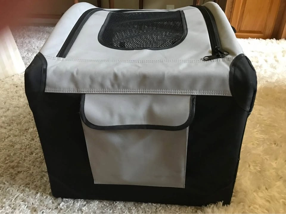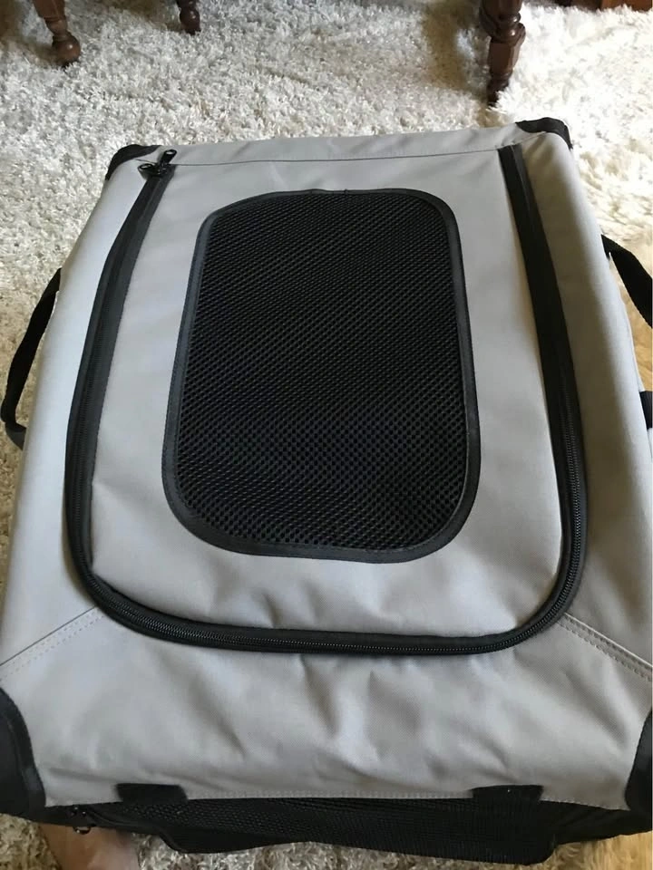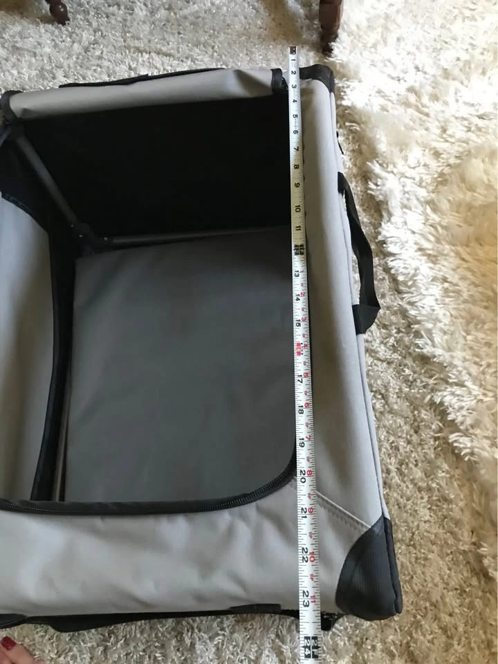 Approximate measurements: Width 17", Length 23", Height 17". This is a nice size for your small furbaby where they don’t feel closed in. Unfortunately, my 7lb Yorkie didn’t like it. From a smoke-free home.