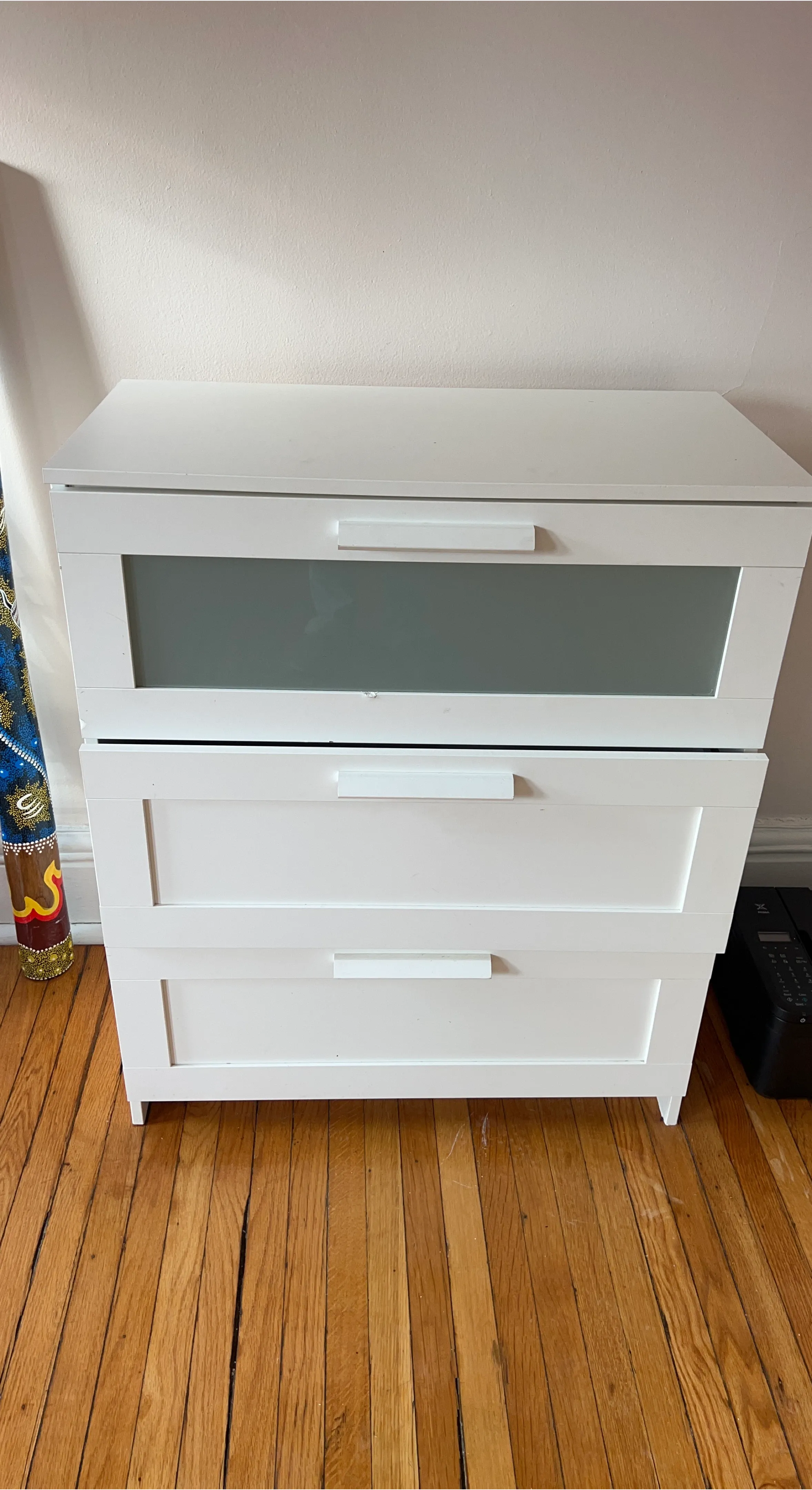 IKEA White 3-Drawer Dresser with Frosted Glass Top Drawer