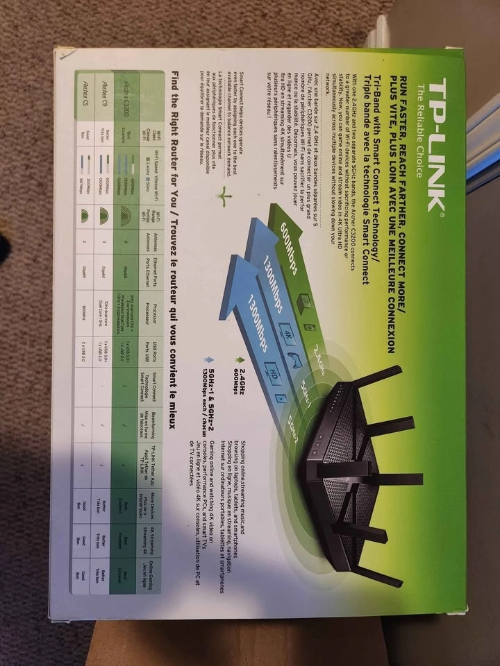 Never used TP LINK AC3200 wireless router. I thought I would need it to extend the WiFi range in my home but didn't end up using it.