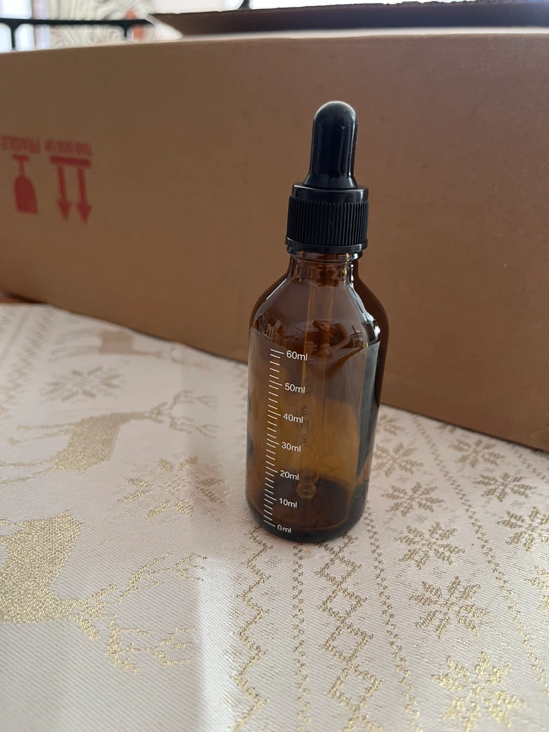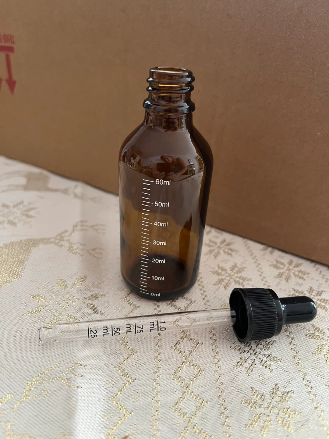 Selling a 30-pack of 2oz (60ml) brand new dark amber glass dropper bottles, ideal for storing and dispensing oils and liquid products.