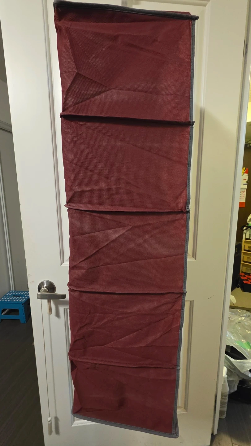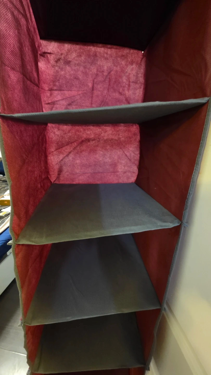 Keep your closet tidy with this handy hanging organizer! It's a burgundy colour and perfect for storing clothes, shoes, or accessories. It's in great condition and ready to help you maximize your closet space