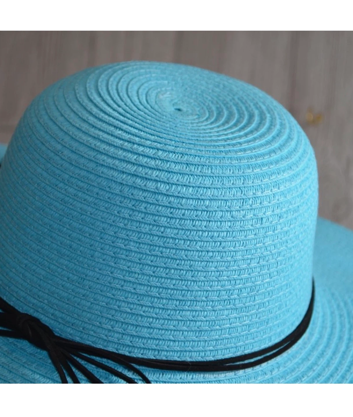Isla Bonita Beach Please Wide Brim Sun Hat Aqua Black Trim NWT