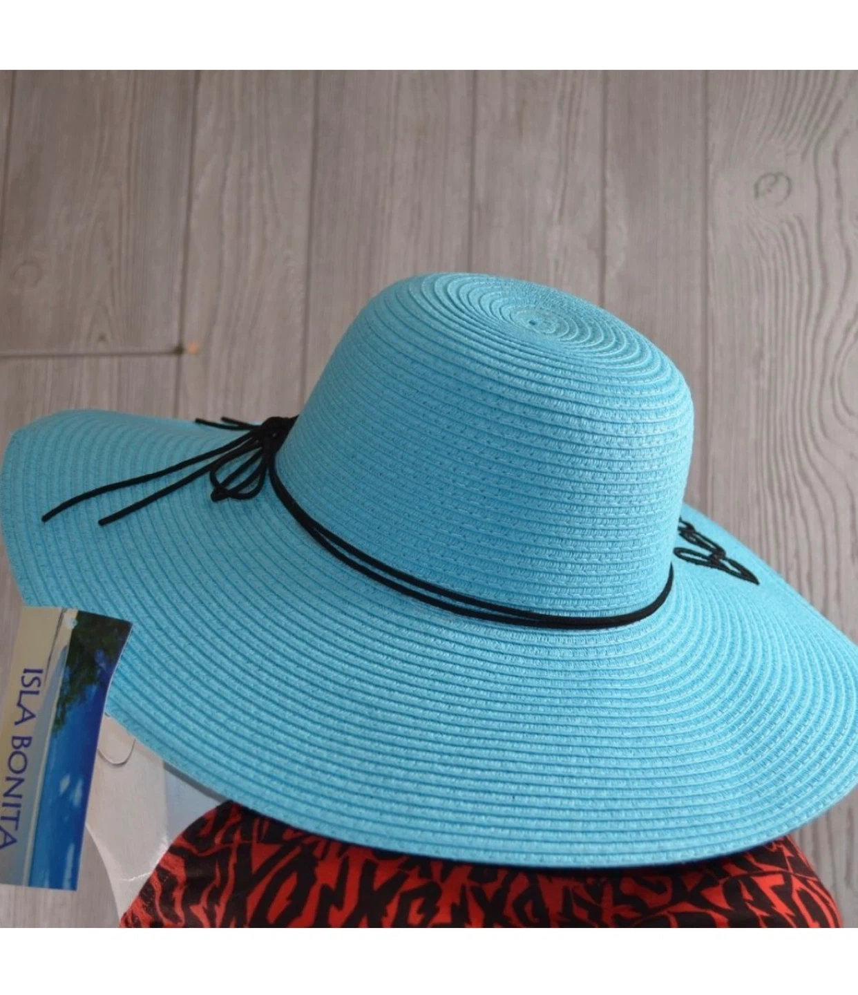 Isla Bonita Beach Please Wide Brim Sun Hat Aqua Black Trim NWT