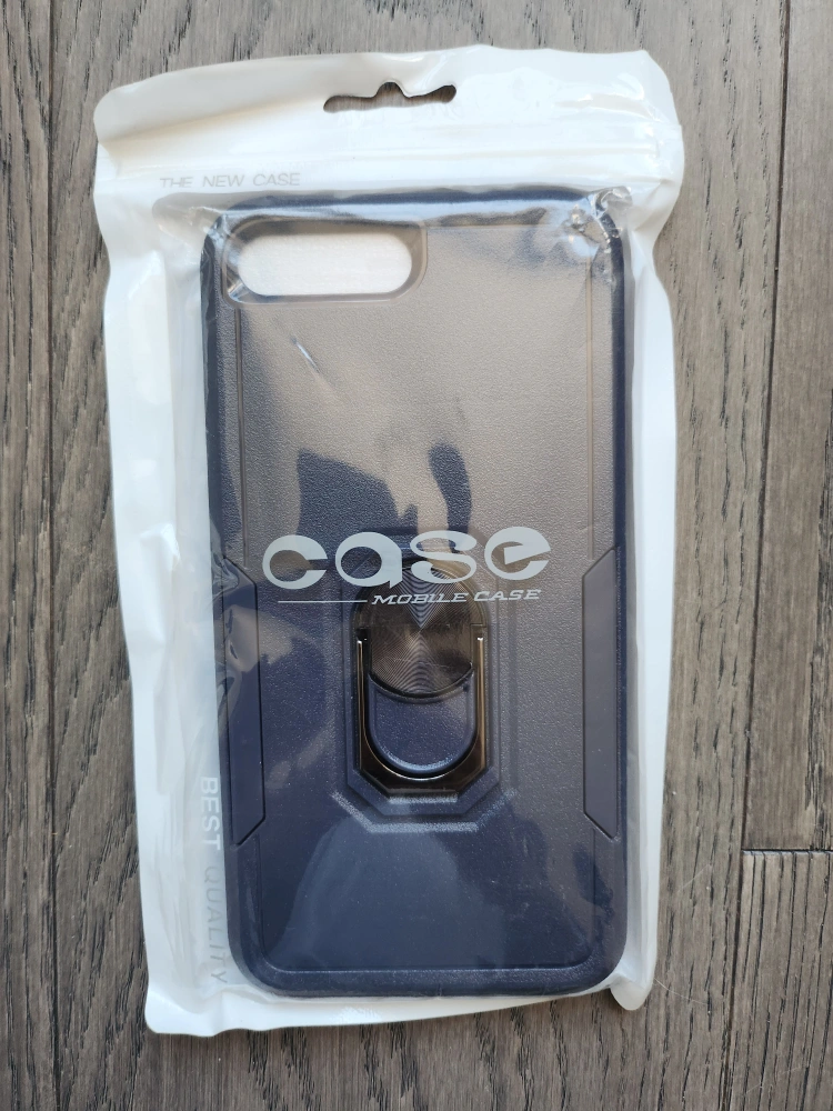 Selling a brand new iPhone case still in its original packaging. It's for iPhone 7/8 Plus. Unopened since I got ordered the wrong one. It's dark blue matte with a black ring stand.