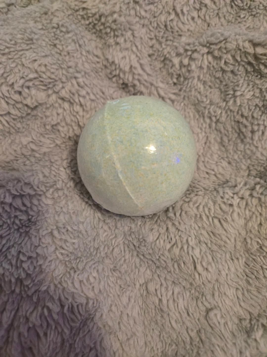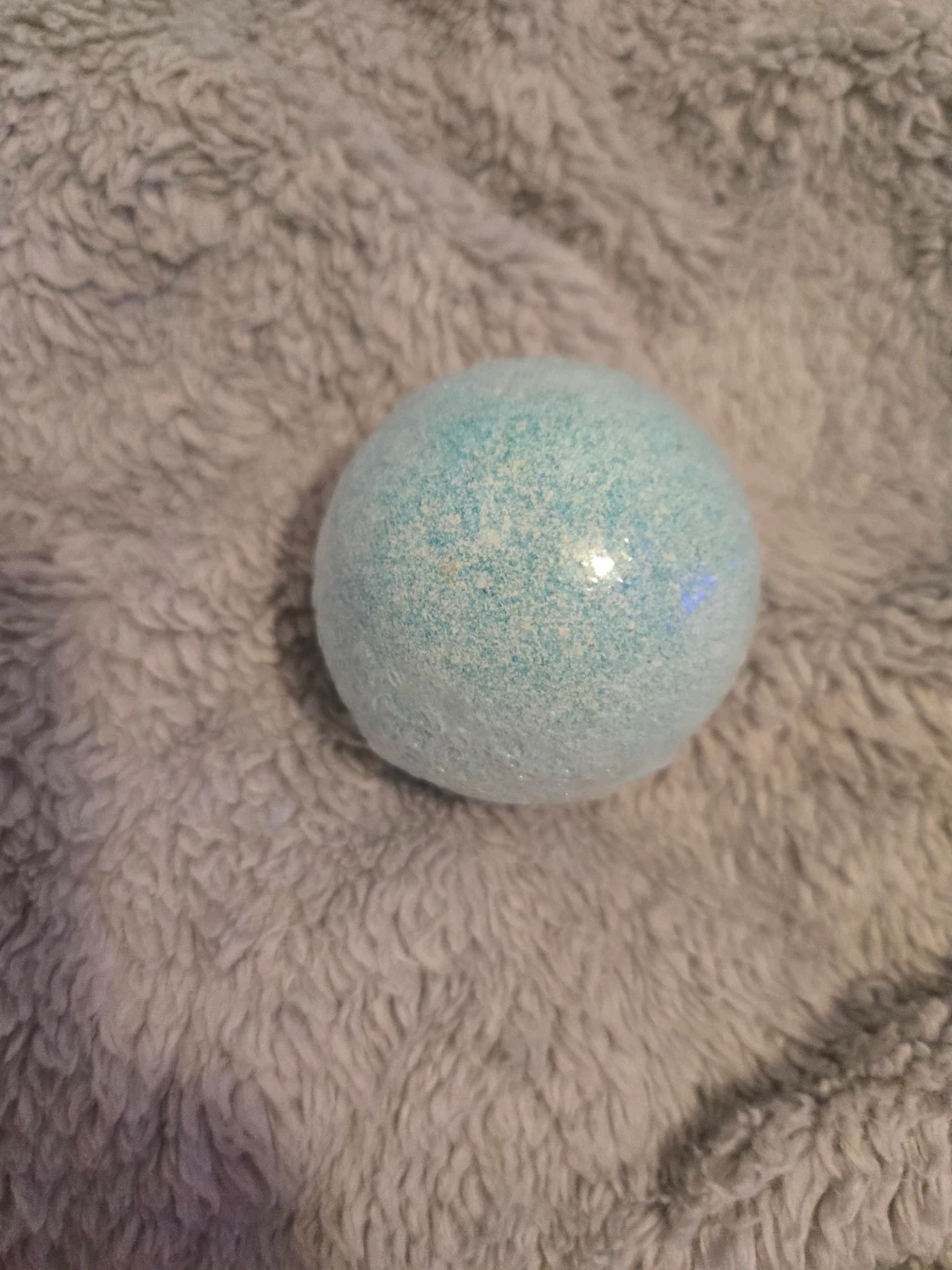 The small blue one is a fuzz bath bomb. Good to use with a bubble bath!