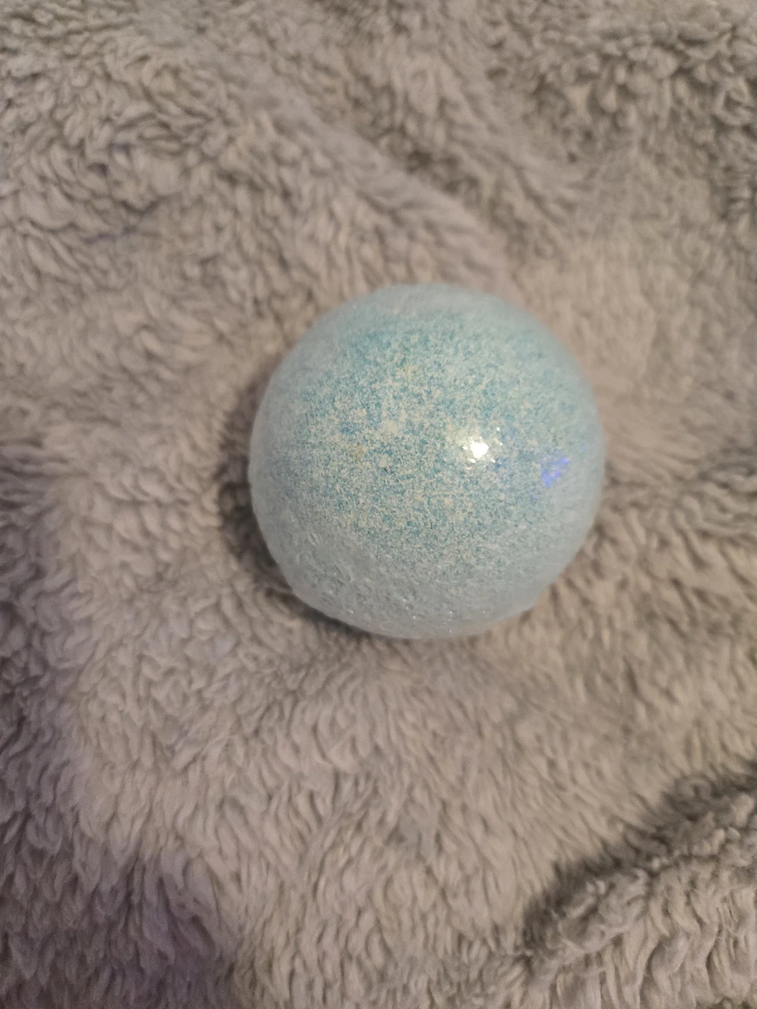 The small blue one is a fuzz bath bomb. Good to use with a bubble bath!