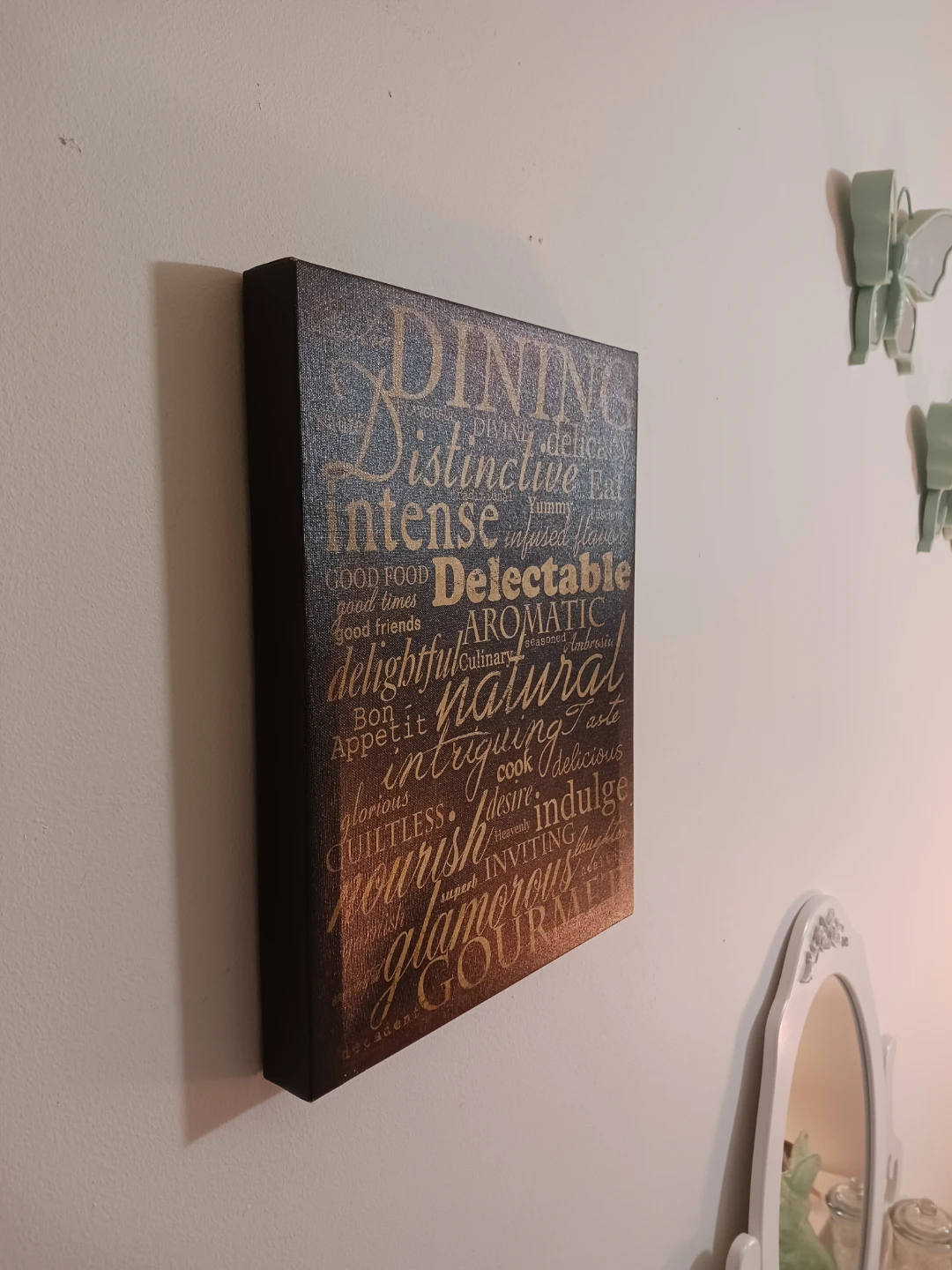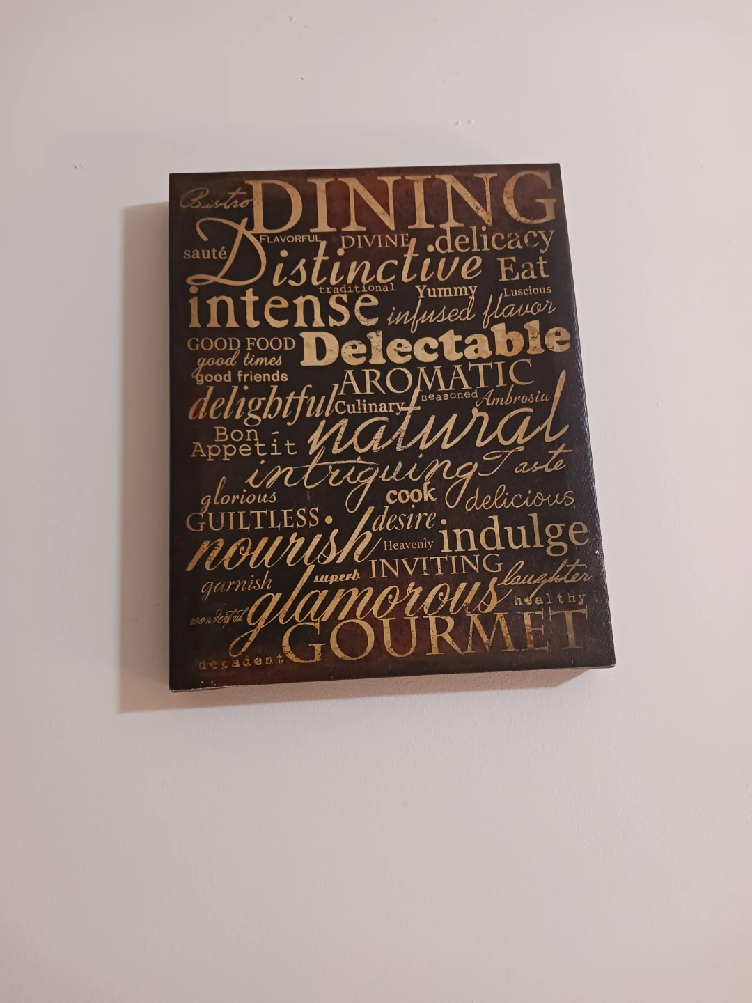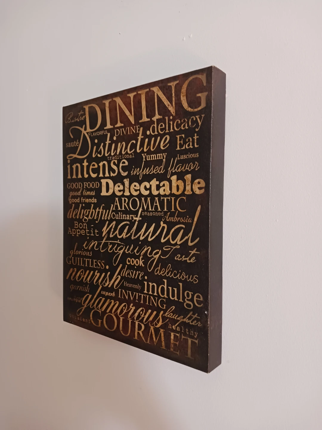 One plaque features a light wood tone with “Kitchen” wording, and the other has a darker wood tone with “Dining” wording.