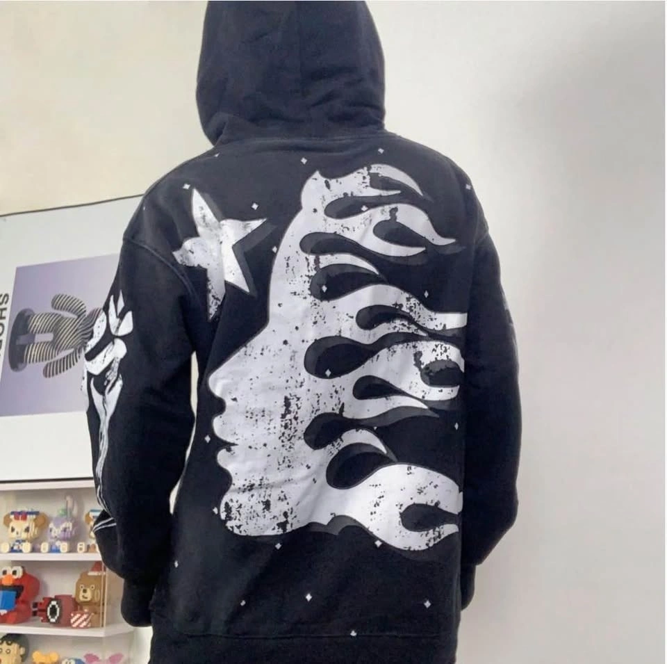Selling a new Unisex Hellstar Racer Hoodie Sweater Vintage Black Thick Sz Large Oversize Gift Idea