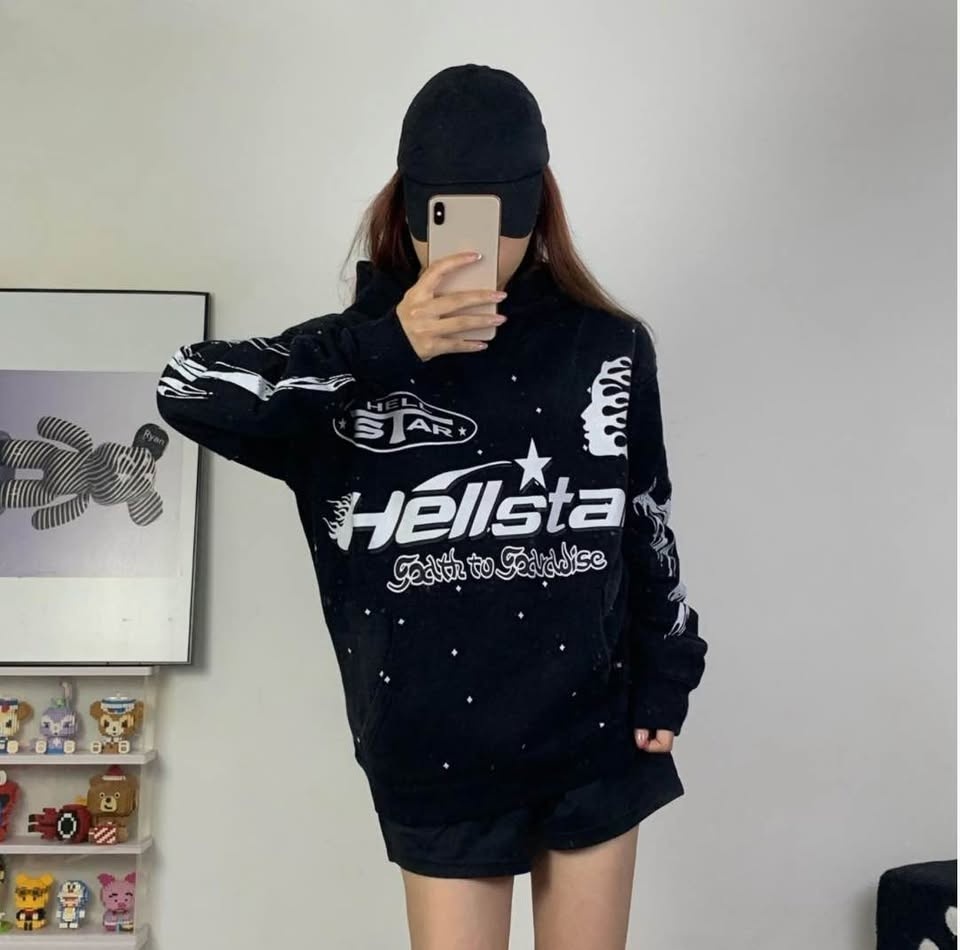 Selling a new Unisex Hellstar Racer Hoodie Sweater Vintage Black Thick Sz Large Oversize Gift Idea