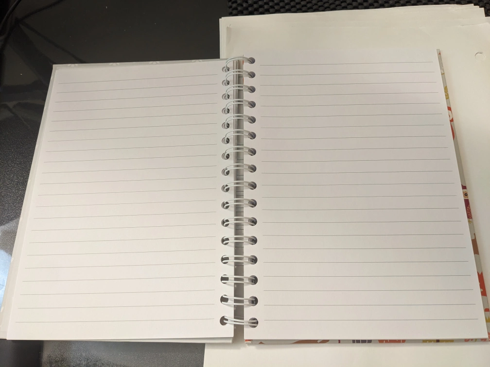 - Notebook size (not including the spiral spine) approximately 6" by 8.5"