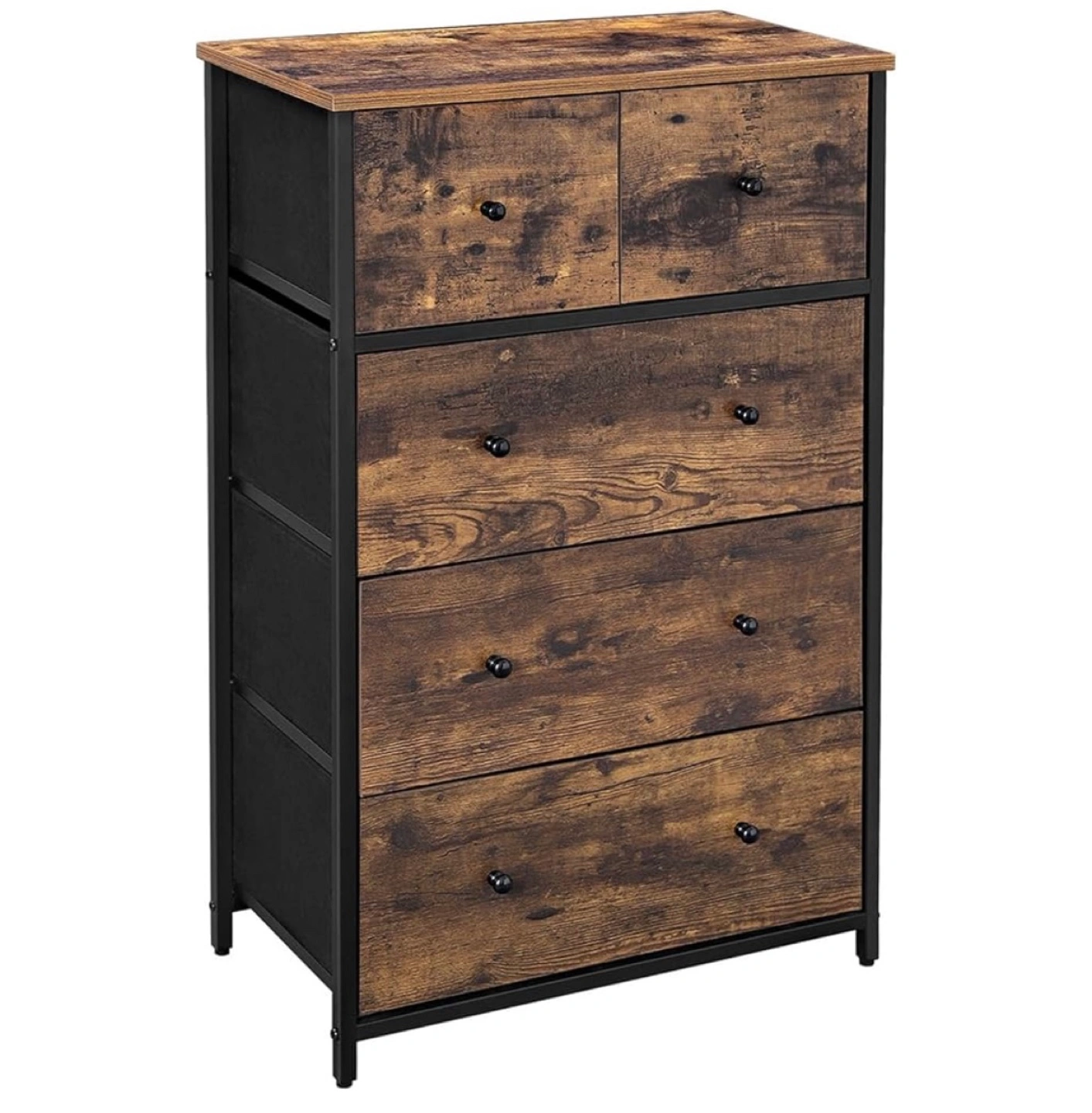 SONGMICS Drawer Dresser, Storage Dresser Tower with 5 Fabric Drawers, Dresser Unit, for Hallway, Bedroom, Rustic Brown and Classic Black ULGS45H