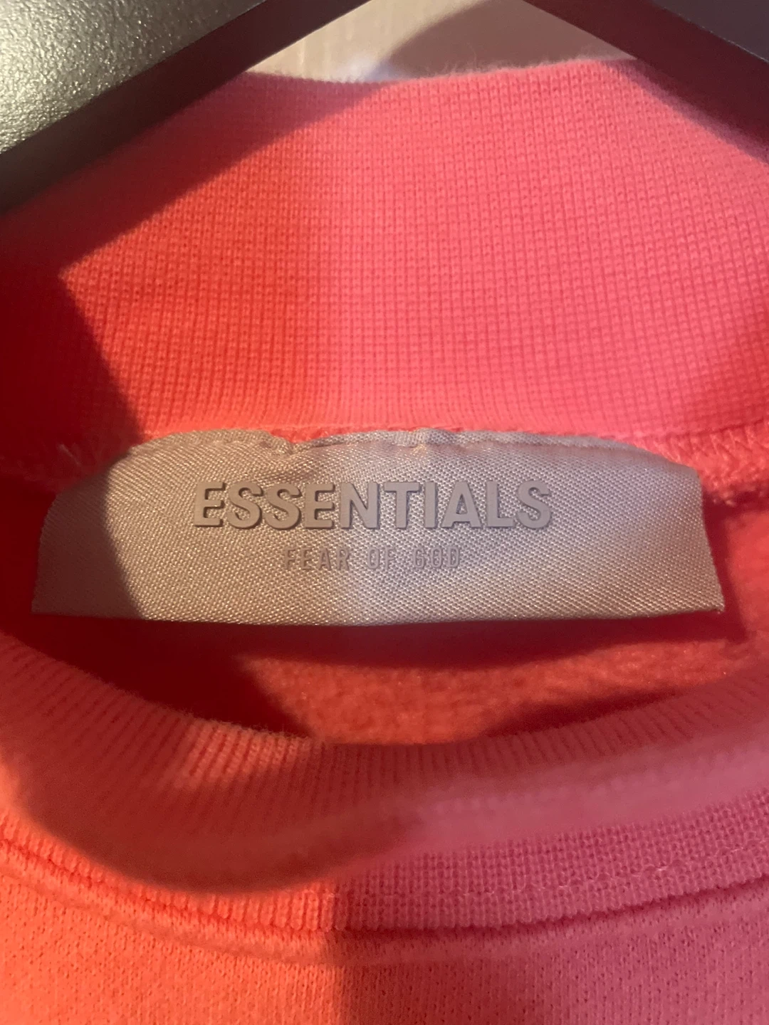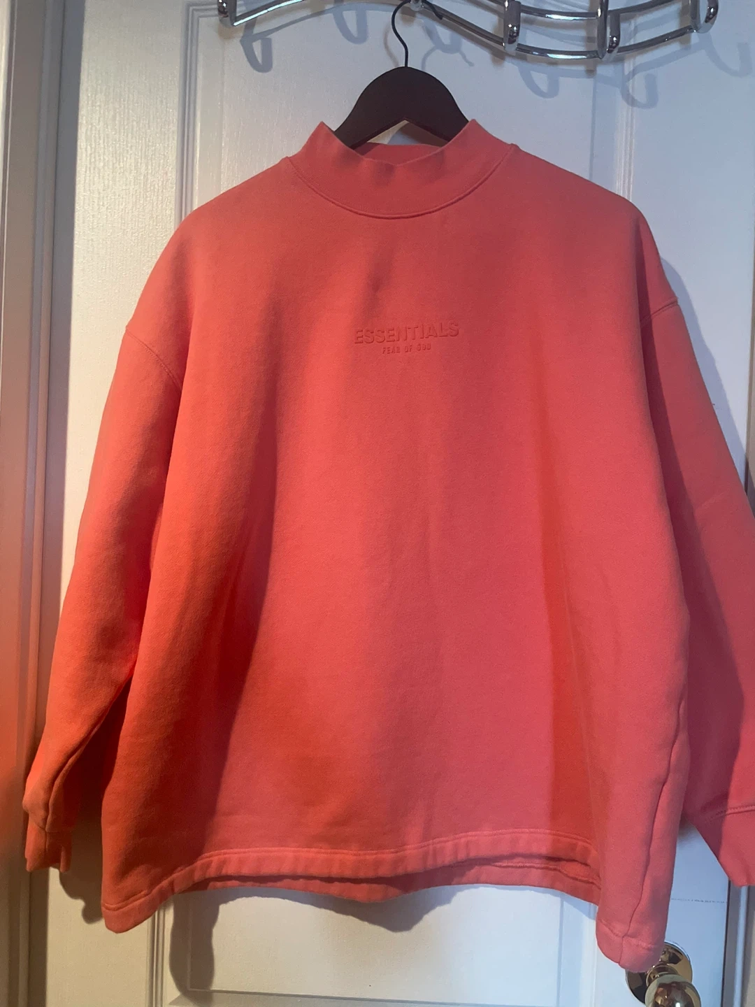 ESSENTIALS by Fear of God mock neck sweatshirt in a bright coral colour. It's a comfortable and stylish pullover. Cotton blend material.