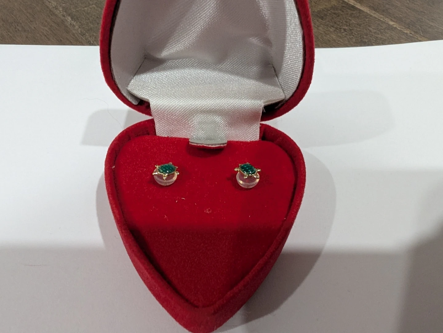 Brand new 10kt yellow gold turtle earrings for sale. Green emerald turtles studs, $160 FIRM.