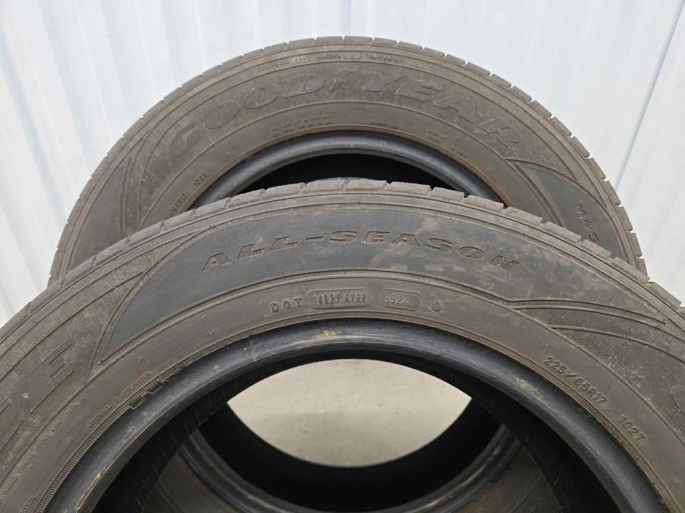 Two Goodyear Assurance all season tires, size 225/65R17. Good condition pair available at an affordable price. Save on buying new.