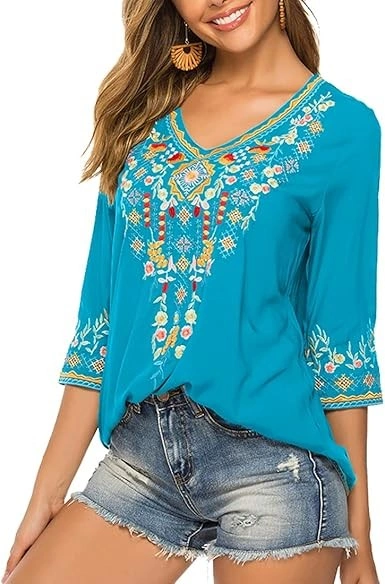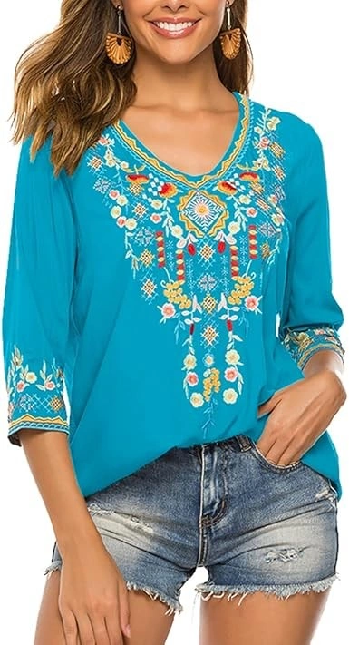 ✔️ AUTHENTIC BOHEMIAN STYLE – Handcrafted floral embroidery on chest, cuffs & neckline.