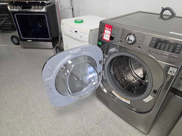 LG Steam Front Load Washer – $465 CAD ✅ 3-MONTH WARRANTY included ✅ Professional installation available ✅ Old appliance disposal available ✅ WASHER – LG WM4270HVA • 4.5 cu. ft. ultra-large capacity • 27" width | Graphite Steel | Stackable • TurboWash® – saves up to 30 min per load • Steam technology – removes dirt, odors & wrinkles • Allergiene™ cycle – great for allergy sufferers • 14 wash cycles | 5 temperature settings • Spin speed: 1,300 RPM • 6Motion™ technology – 6 different wash motions • NeveRust™ stainless steel drum • NFC Tag-On – customize cycles via smartphone • SmartDiagnosis™ • LoDecibel™ quiet operation • DirectDrive™ Motor (10-year warranty on motor) • ENERGY STAR® Certified
