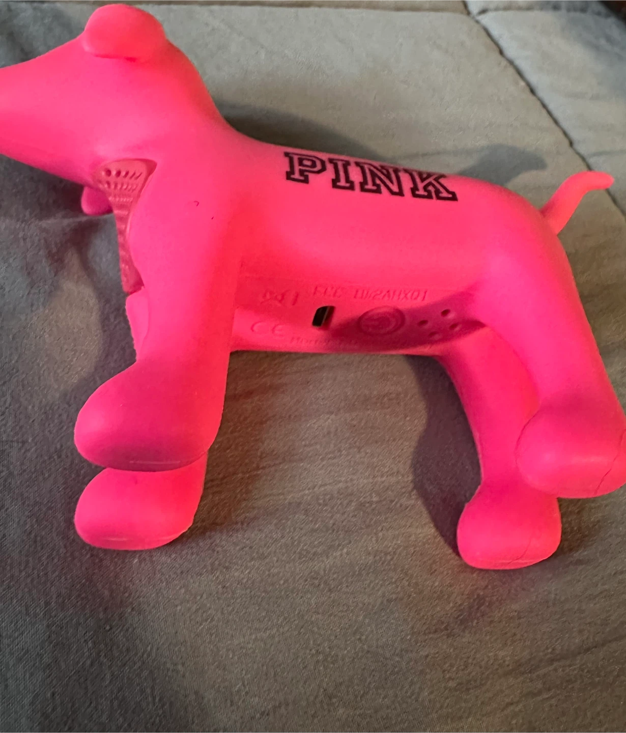 This is a mini pink dog speaker from Victoria's Secret PINK. It features the PINK logo on its side. It's a fun collectible item! No charger…Pick up only! East 106th st and 1st ave!
