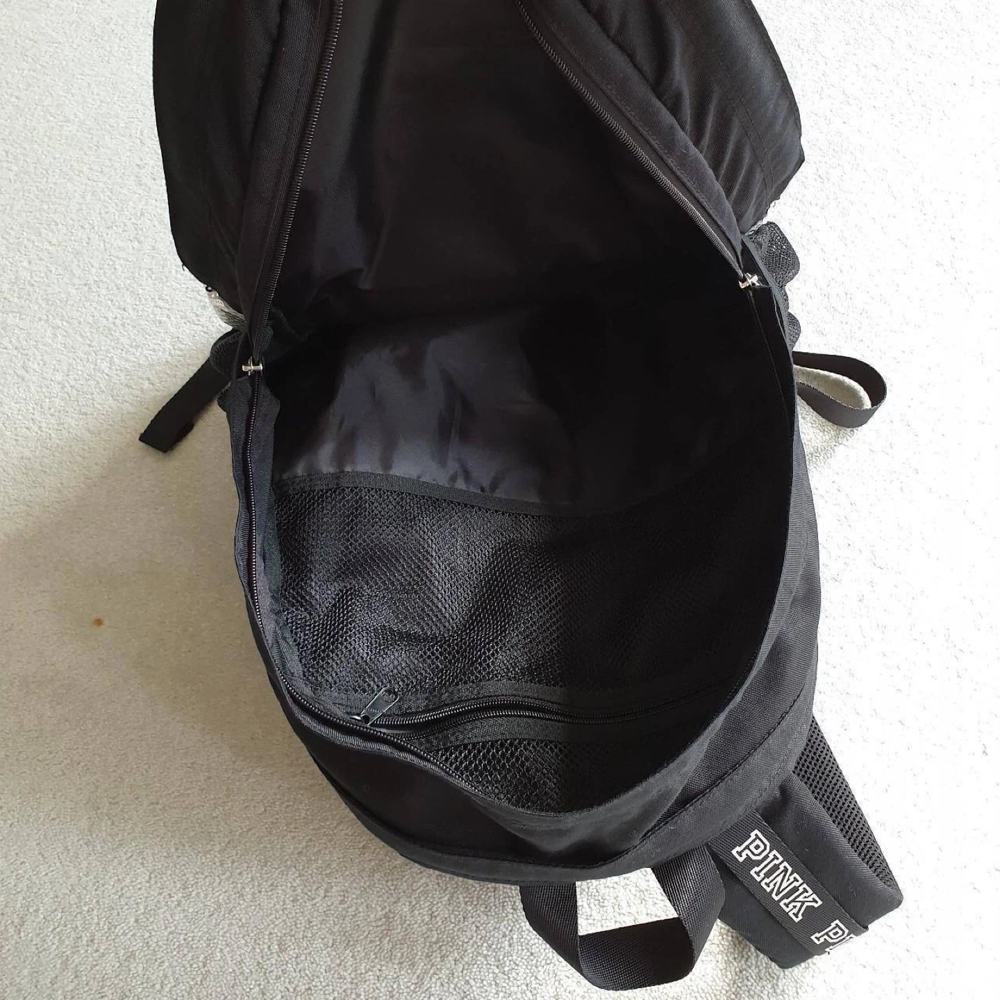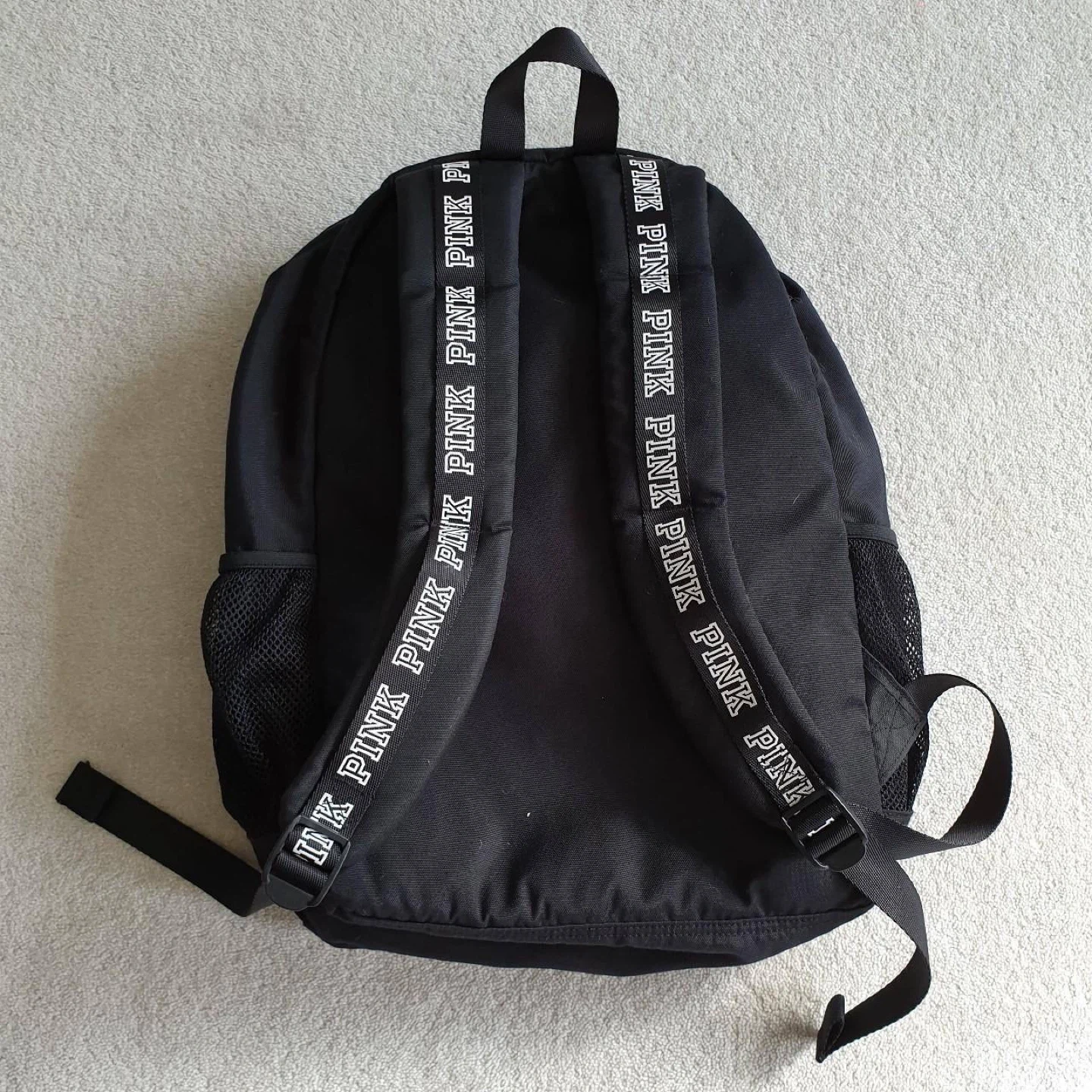 Selling a Victoria's Secret PINK sequin backpack! It's in good condition and perfect for school or travel. The backpack features a black base with sequin detailing on the front and the PINK logo.