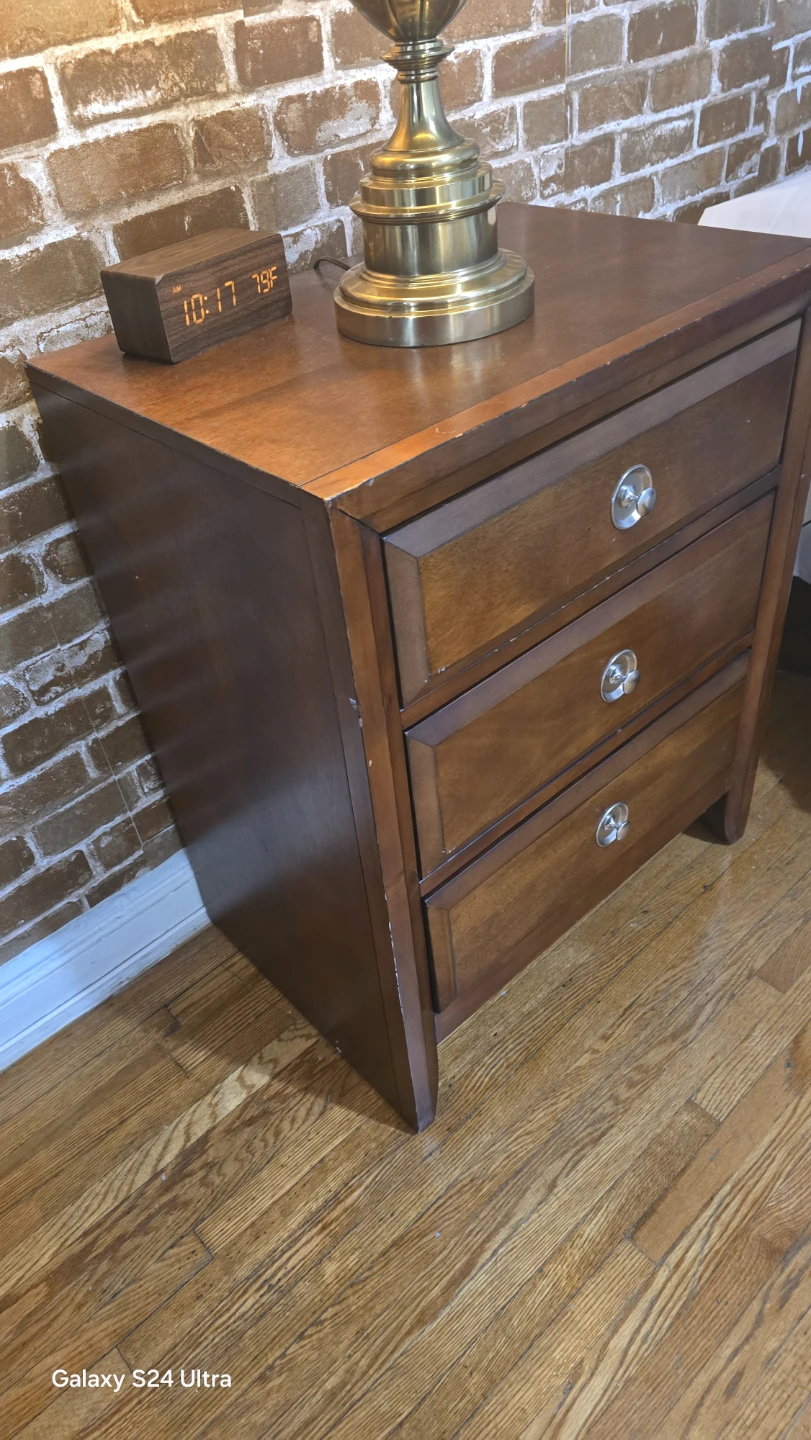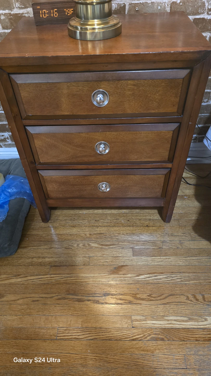 Buy & SellWooden 3-Drawer NightstandWooden 3-Drawer Nightstand$20This wooden nightstand has three drawers with silver hardware. It's made of wood with a brown finish. It's a nice addition to any bedroom!ConditionGoodWHERE TO MEETCheck LocationView MapSELLERverifiedDanJackson Heights21713 reviews7 chats·2 favorites·203 viewsSEND CHAT TO SELLERHi Dan! I’m interested in your listing.Hi Dan! I’m interested in your listing.Get the Karrot app to chatSign In to chat