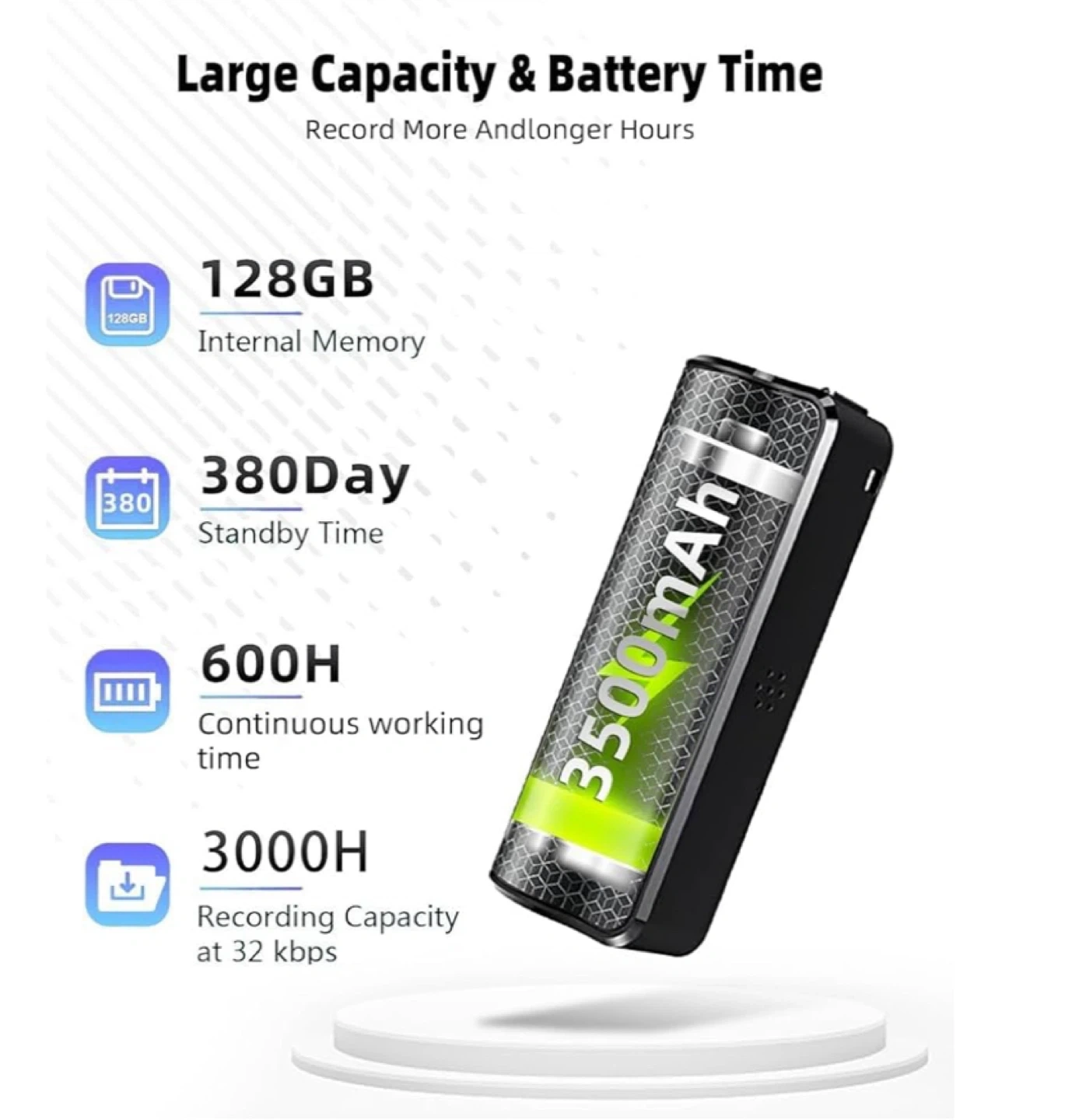 - Long battery life with 3500mAh battery